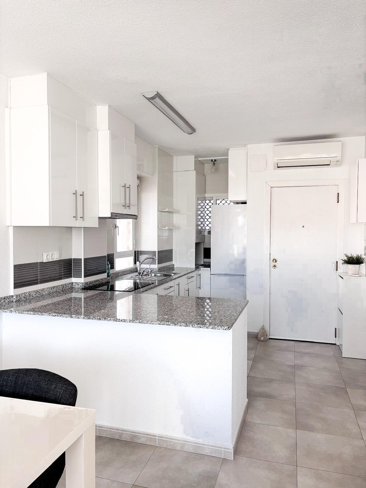 1-bedroom apartment located in the center of Albir, just 850m from the beach. Completely renovated, it stands out for its views and large windows facing South, ensuring good lighting and sun throughout the day. It features an open-plan kitchen, air conditioning, and built-in wardrobes.~Second floor with elevator, close to all services, with a wide variety of restaurants and shops.~Urbanization with well-maintained common areas and a swimming pool.~Garage space included in the price.