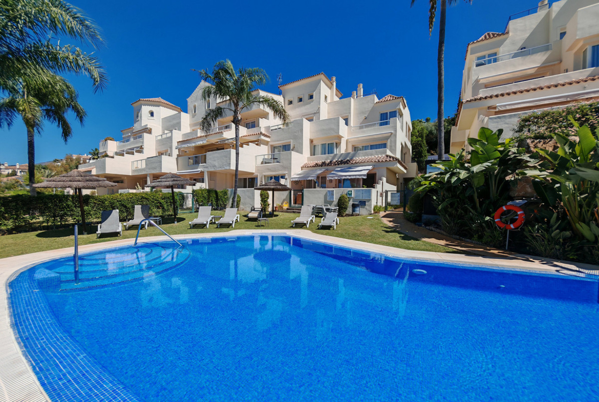 Ground Floor Apartment for sale in , Benahavis with 2 bedrooms, 2 bathrooms and with orientation south/west, with communal swimming pool and communal garden. Regarding property dimensions, it has 91 m² built, 77 m² interior and 39 m² terrace. Has the following facilities mountainside, air conditioning, fully fitted kitchen, marble floors, kitchen equipped, living room, sea view, mountain view, gated community, garden view, pool view, panoramic view, close to golf, uncovered terrace, open plan kitchen, optional furniture, excellent condition and pets allowed.