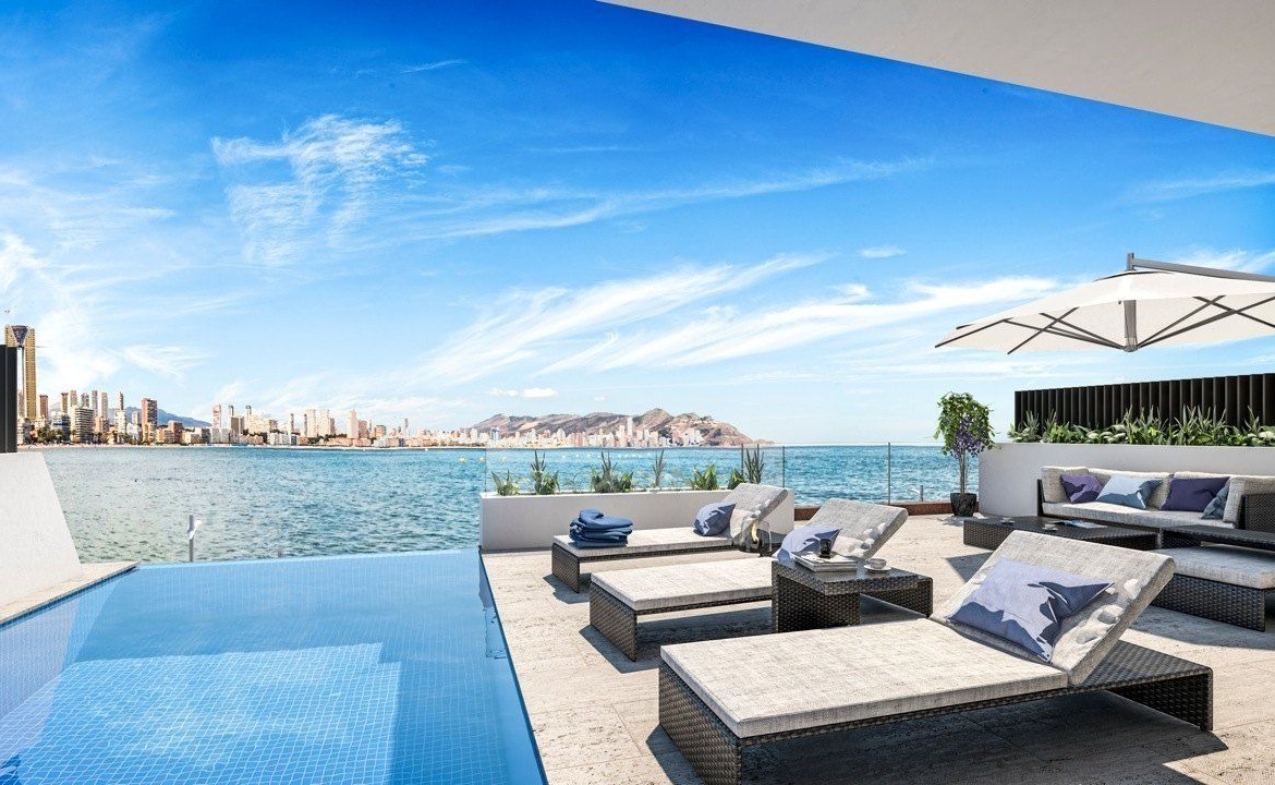 KEY READY! Unique front line duplex penthouses with private pool for sale in Benidorm with sea views.