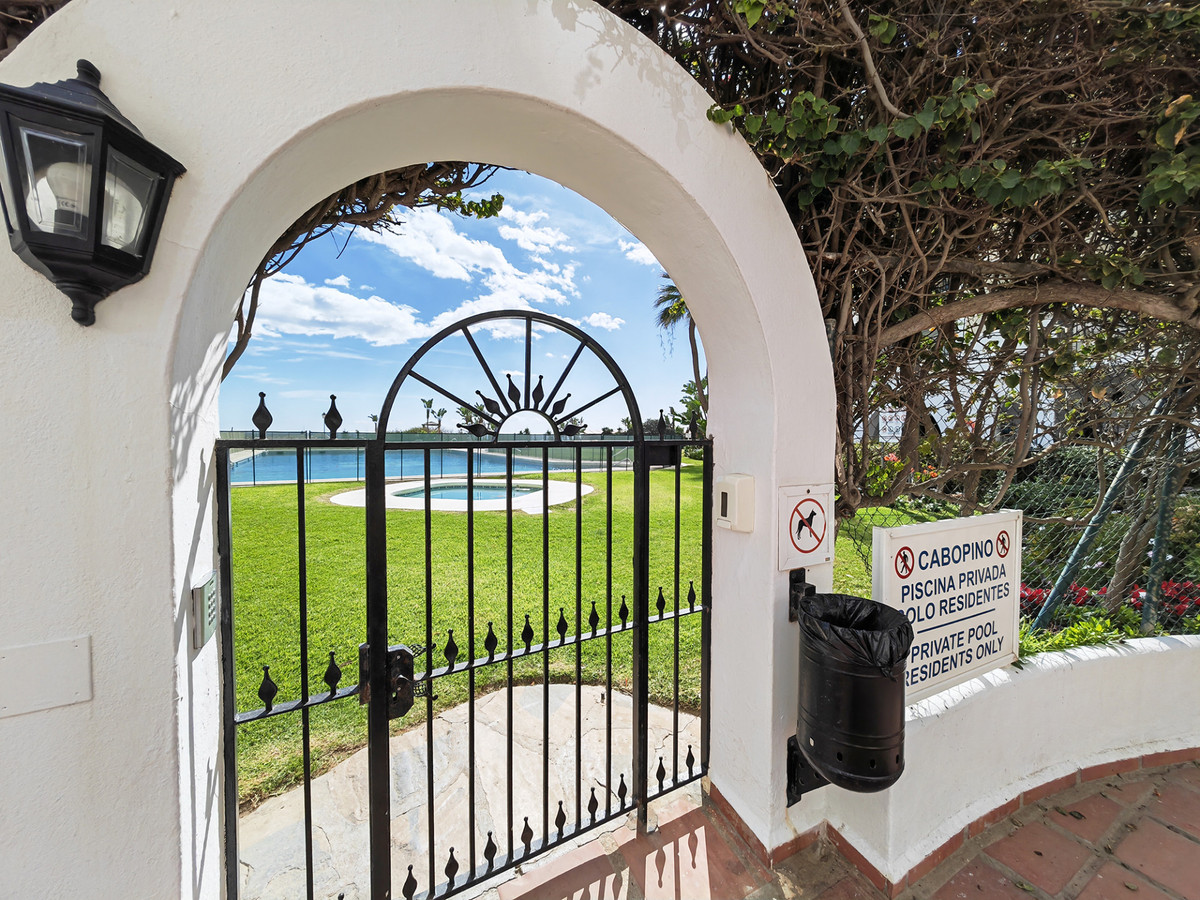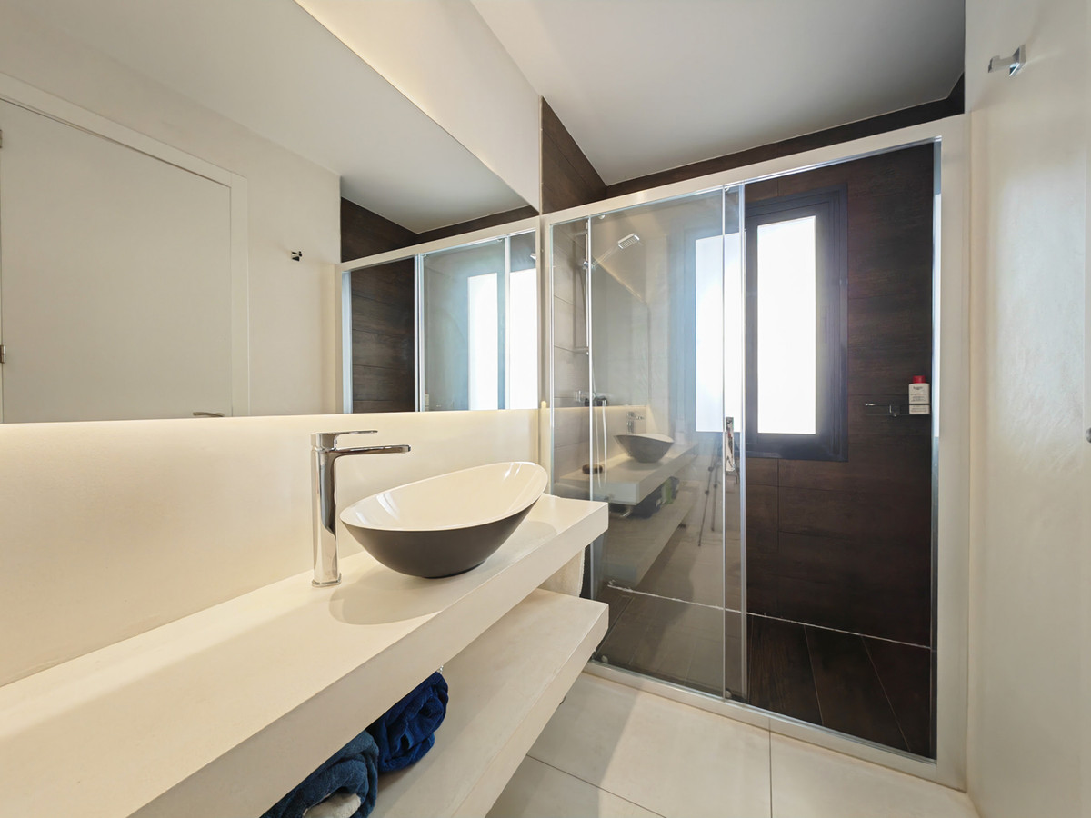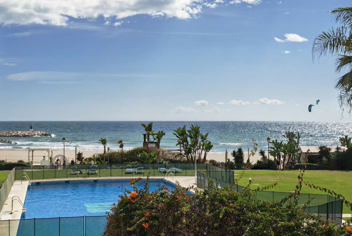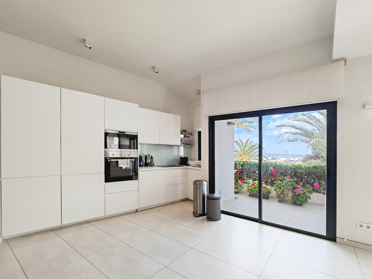 Apartment for sale in Cabopino, Marbella with 2 bedrooms, 2 bathrooms, 1 toilet and with orientation south, with communal swimming pool and private garage (2 parking spaces). Regarding property dimensions, it has 135 m² built and 20 m² terrace. Has the following facilities transport near, air conditioning, fully furnished, fully fitted kitchen, double glazing, guest toilet, private terrace, sea view, internet - wi-fi, electric blinds, fitted wardrobes, beachside, close to children playground, close to sea / beach, close to golf, glass doors, open plan kitchen, balcony, recently renovated / refurbished, close to shops, close to port, close to schools, surveillance cameras and pets allowed.