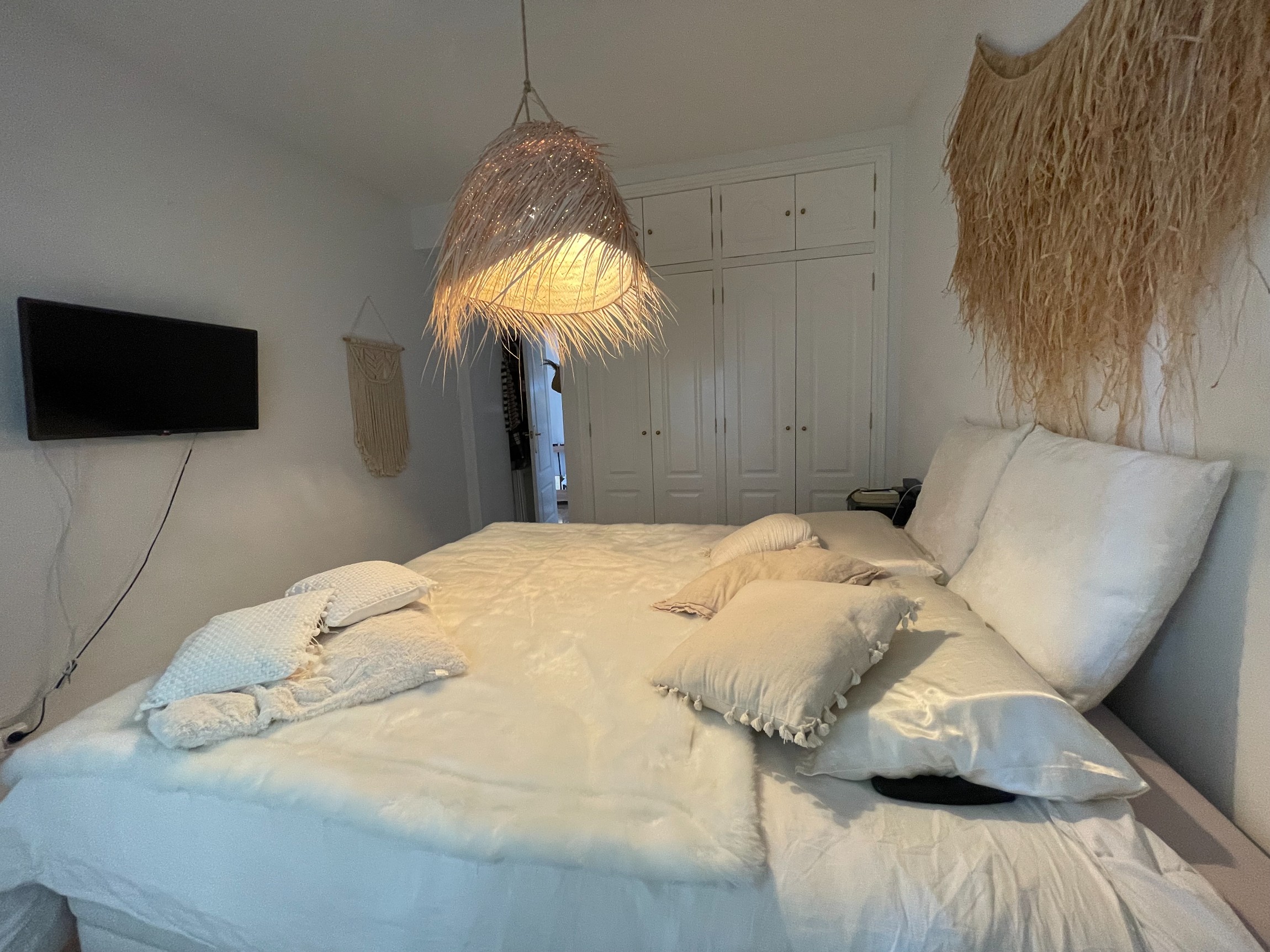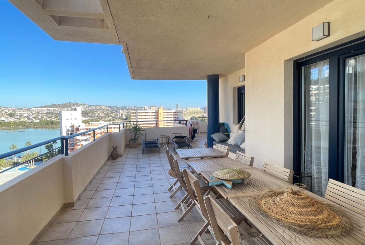 The master bedroom has a built-in wardrobe, a bathroom with bathtub and the second bedroom has an enclosed terrace with beautiful views to the salt lakes of Calpe.