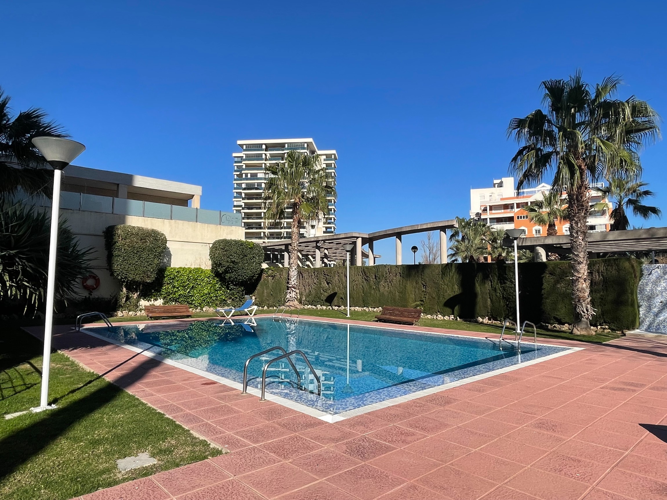 A 2 bedroom flat with beautiful sea views, in the port, with communal pool, children´s playground and parking space included.