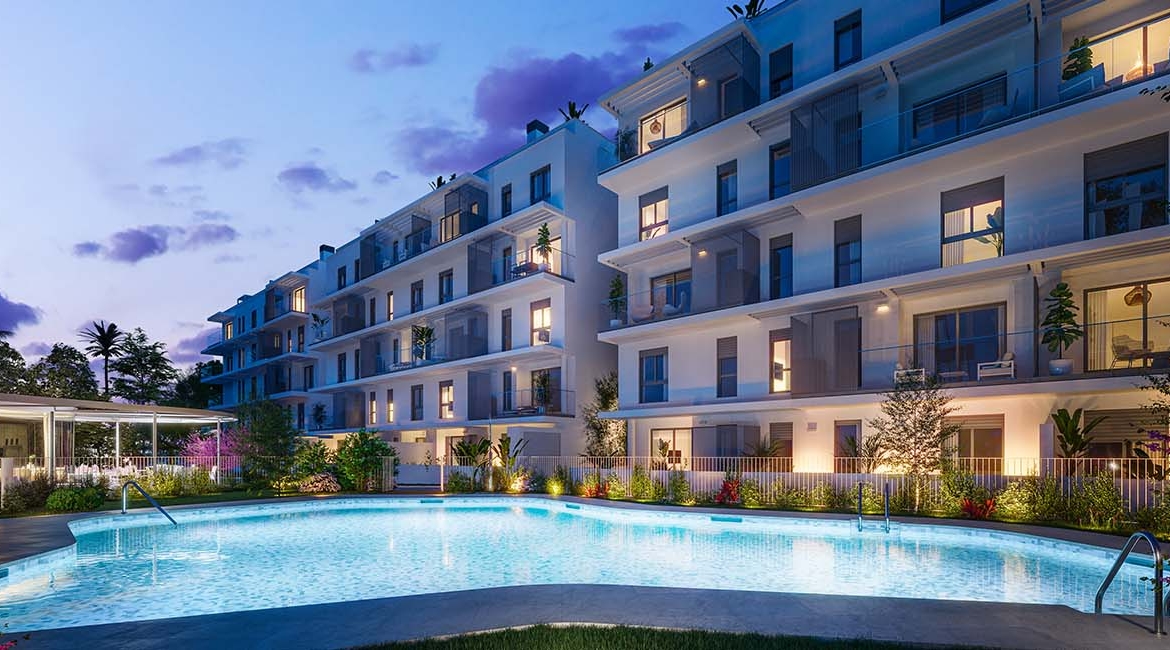 Brand new construction luxury apartments in Denia near the Marina and just 500 metres from the port, Denia town centre and the beach. These top quality apartments include lots of extras and have excellent communal areas such as gym, communal pool, gardens, communal parking and storage rooms. This example is a 2 bedroom, 2 bathroom apartment. More apartments available, contact us for full list of remaining properties. *Photographs are 3D renders and act as examples only
