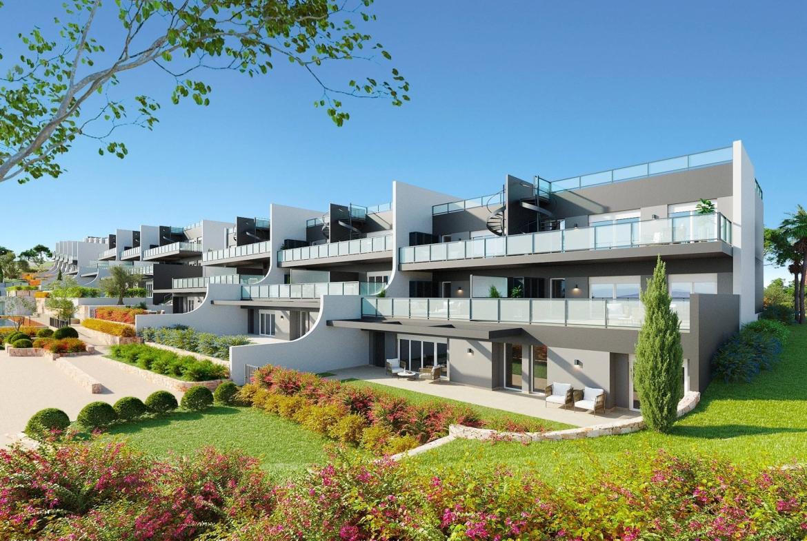 A fantastic new complex constructed by a well known developer offered to you directly!!~Located within an easy drive of the coast and the pretty mountain village of Finestrat, there are a selection of apartments and townhouses available with prices starting at only 242.000 Euros for a new property.~Equipped with installed ducted air conditioning, double glazing, laminate floors, electric sun shades and much more! These proerties will be ready to move in and enjoy, all you'd need is the furniture and your suitcases.~Please contact us for more detailed plans, prices or any other information, we are happy to help.