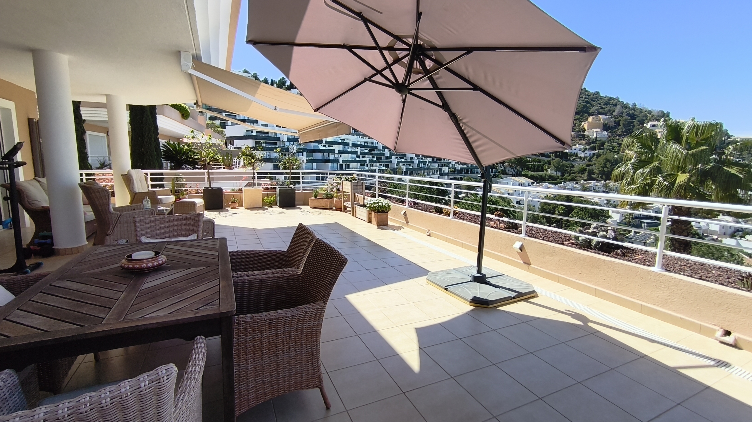 Beautiful corner apartment located in the prestigious Las Mimosas community, featuring a spacious terrace with a jacuzzi and stunning sea views.