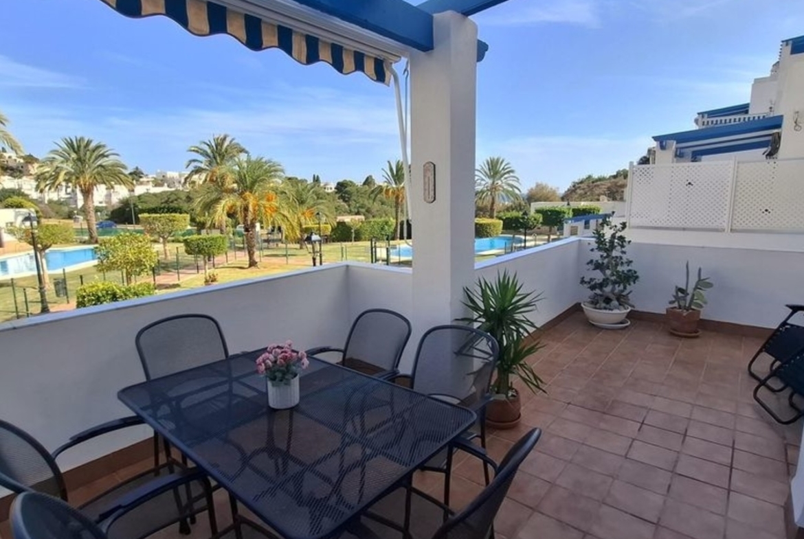 We are pleased to bring to the market this attractive three-bedroom, one-bathroom first-floor apartment in the highly sought-after coastal development of Los Atalayones, Mojácar. The north-east facing property offers a spacious private terrace with views across the communal swimming pools, beautifully maintained gardens and sea views.
