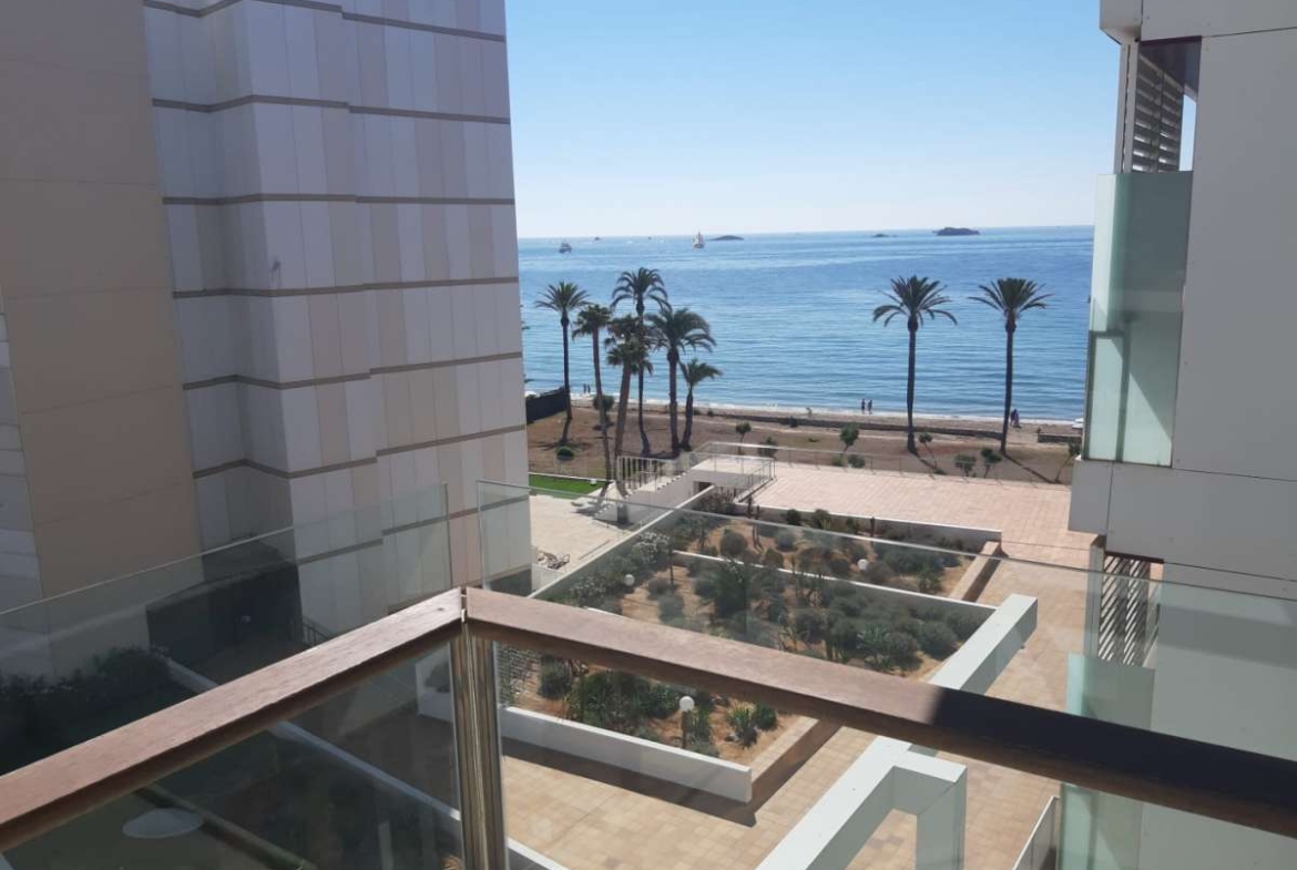 The surroundingsOnly the beach separates this complex from the fantastic blue seawater of Playa den Bossa and your doorstep. The location is very central, close to Ibiza Town and the airport. The beautiful beaches of Salinas are also nearby.The buildingThe luxurious and L-shaped building consists of 129 apartments and Dream Propertiesis selling 42 of them. The structure lays right beside the beach and offers extensive green areas and a communal swimming pool. There is plenty of parking space in the garage. The apartmentThis apartment is delivered as shown ,and offers lateral sea view or a little bit further away than the frontline type, which you can enjoy from your balcony. The apartment is finished according to the highest standards, excels in spaciousness and covers unique details. There are two bedrooms and two bathrooms.