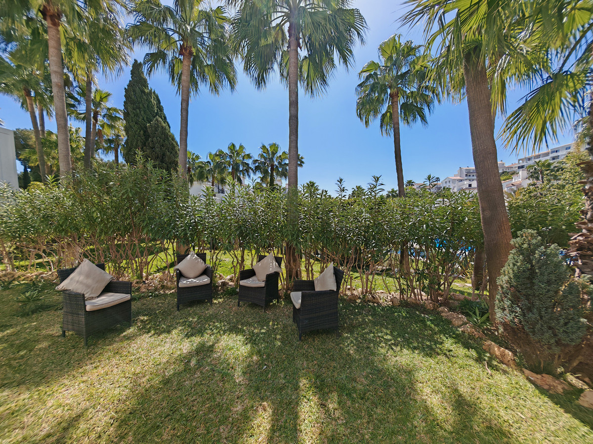 Ground Floor Apartment for sale in , Mijas Costa with 2 bedrooms, 2 bathrooms and with orientation south/east, with communal swimming pool and communal garden. Regarding property dimensions, it has 100 m² built. Has the following facilities amenities near, transport near, air conditioning, fully fitted kitchen, fireplace, security entrance, double glazing, kitchen equipped, living room, automatic irrigation system, security shutters, bars, fitted wardrobes, gated community, garden view, pool view, close to children playground, close to sea / beach, close to golf, good condition, close to shops, close to town and close to schools.