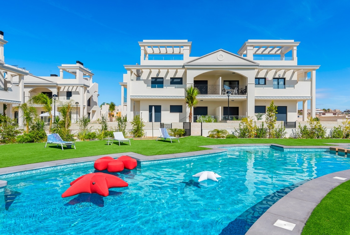 The residential complex in Rojales offers a variety of common areas designed for the enjoyment and comfort of its residents. The landscaped areas provide a green and relaxing environment, perfect for walking or enjoying a moment of tranquility outdoors. The community pool is an ideal place for socializing and enjoying the sun, while the community garage ensures a safe and convenient parking space for vehicles. These facilities are designed to complement the lifestyle of the residents, offering shared spaces that promote community and well-being.