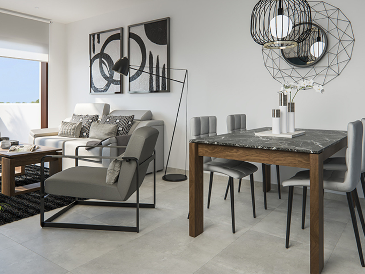 Los Narcisos bungalows offer 1, 2 and 3 bedroom beach apartments with large terraces including underground parking space. The properties on the ground floor have a covered porch and garden.