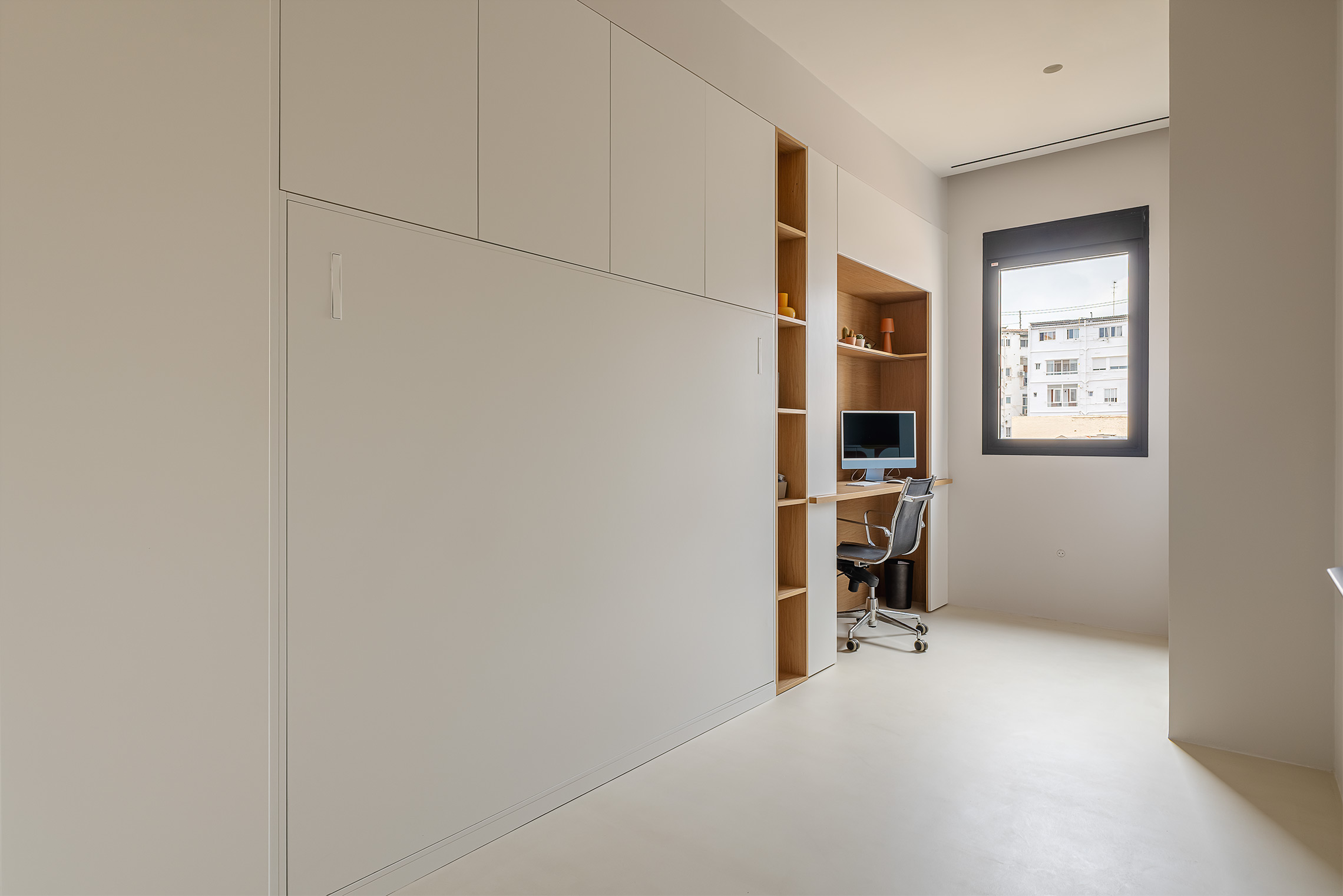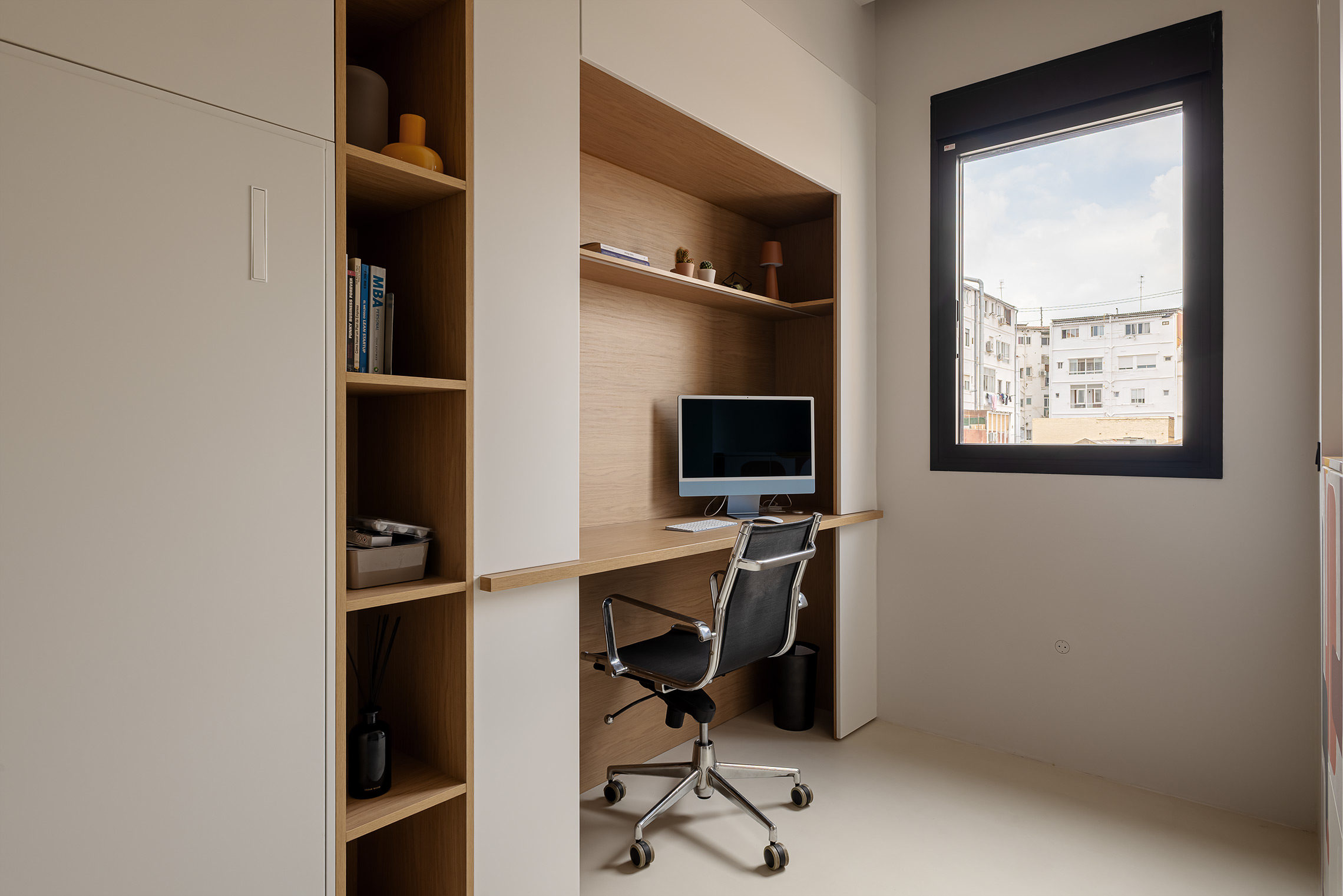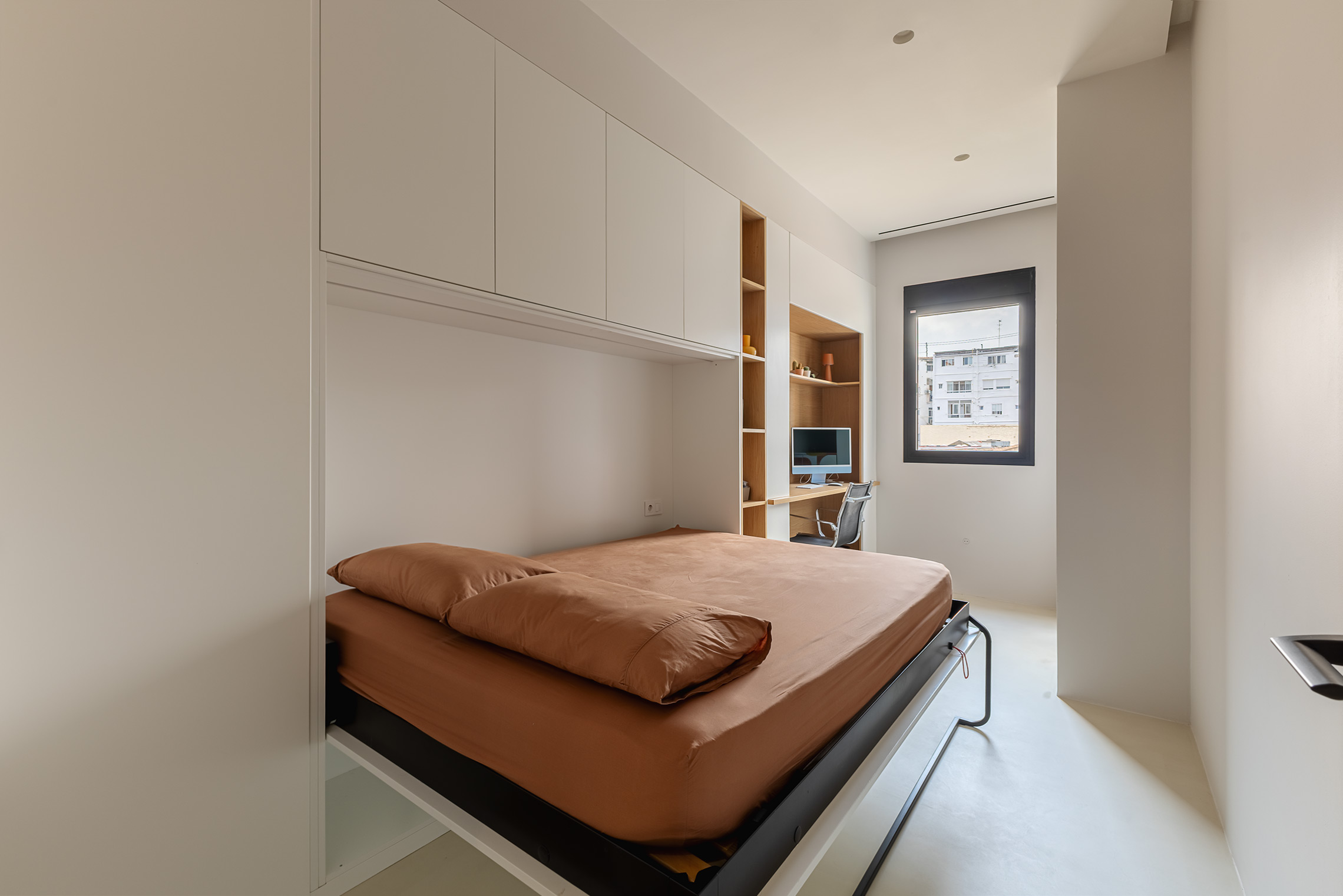 Comfort is ensured thanks to centralized air conditioning with Wi-Fi control, concealed-frame windows with thermal break and acoustic/thermal glazing, and sound-absorbing wall panels in the living room and bedroom. Additionally, the property includes a custom laundry area with space for both washer and dryer.