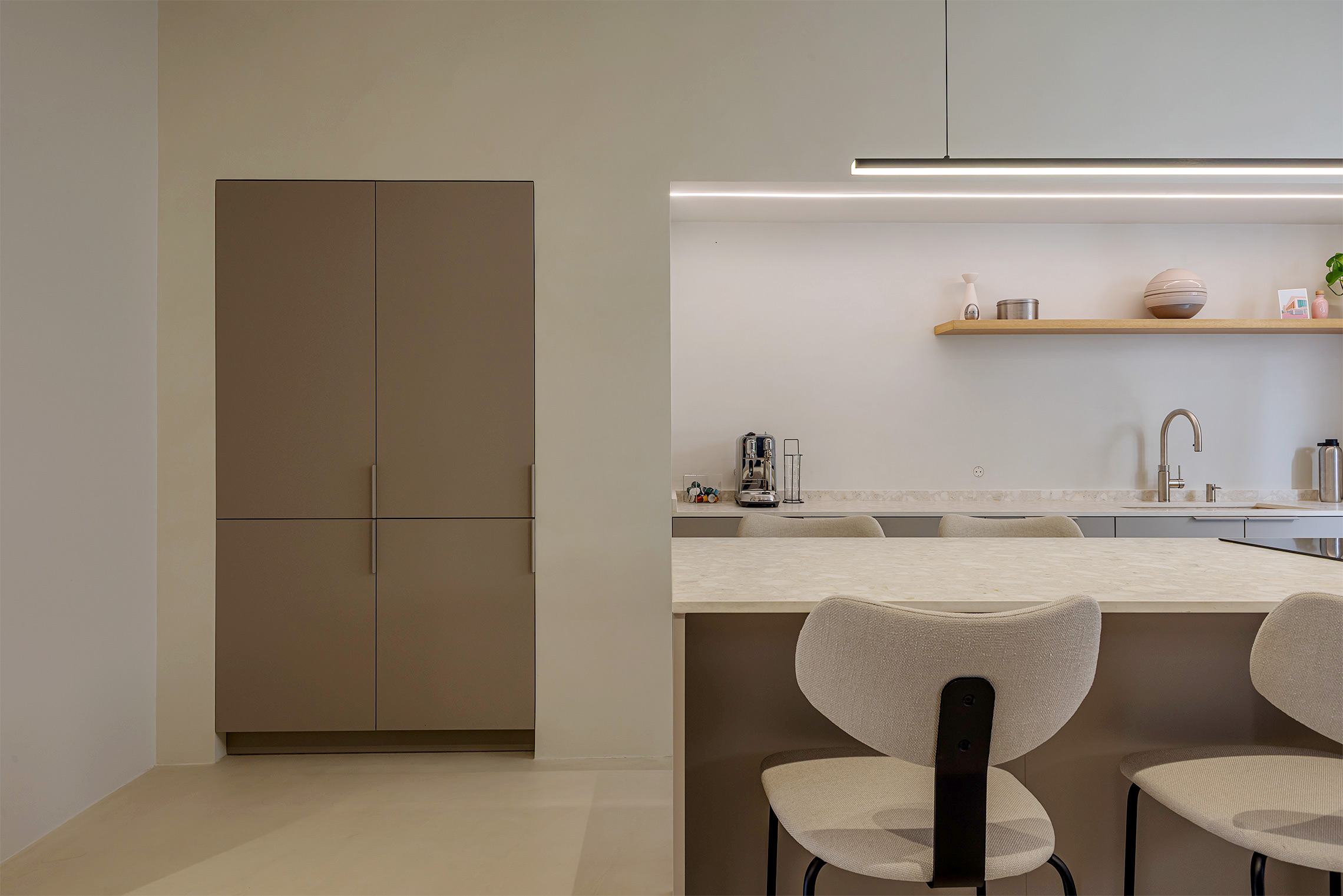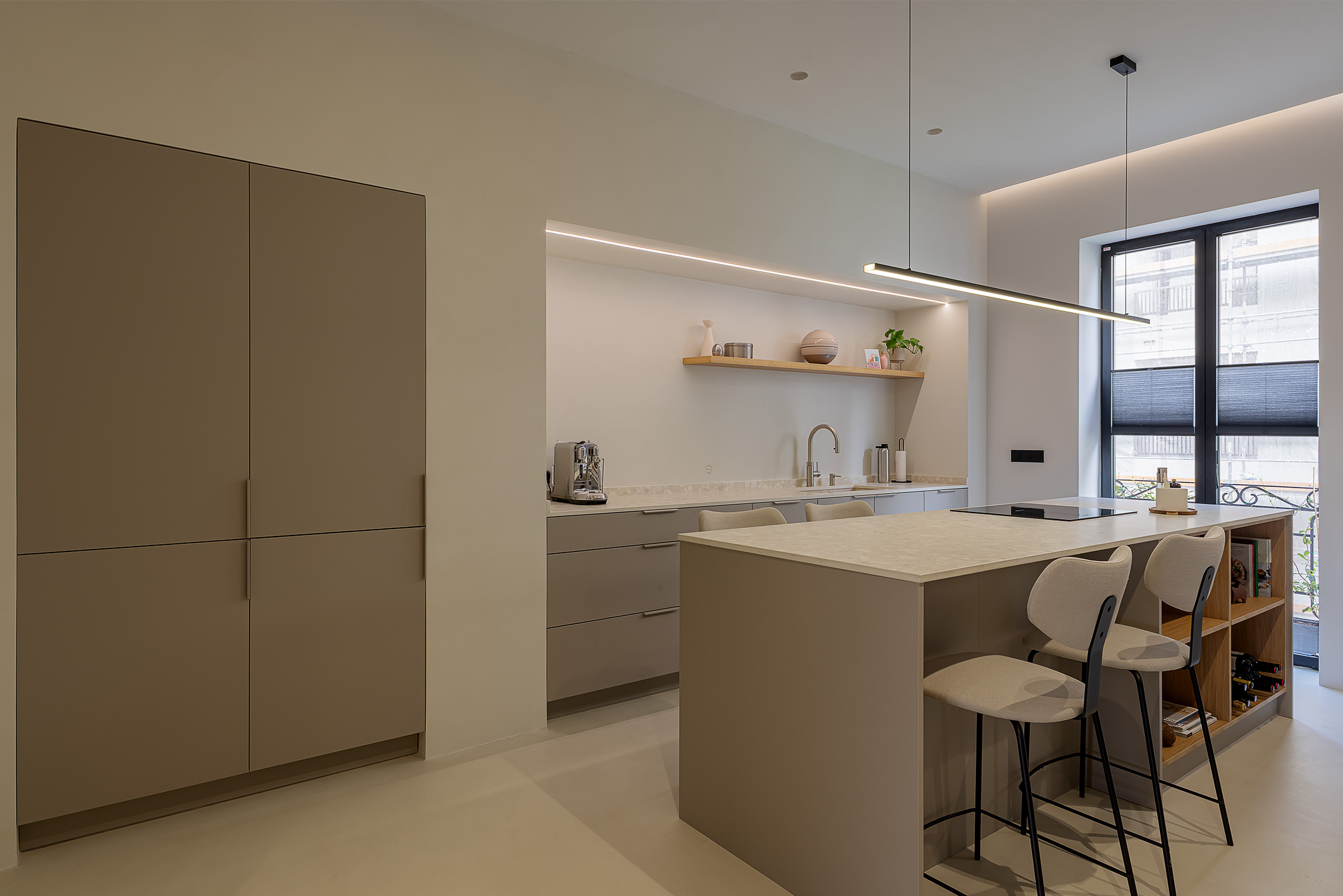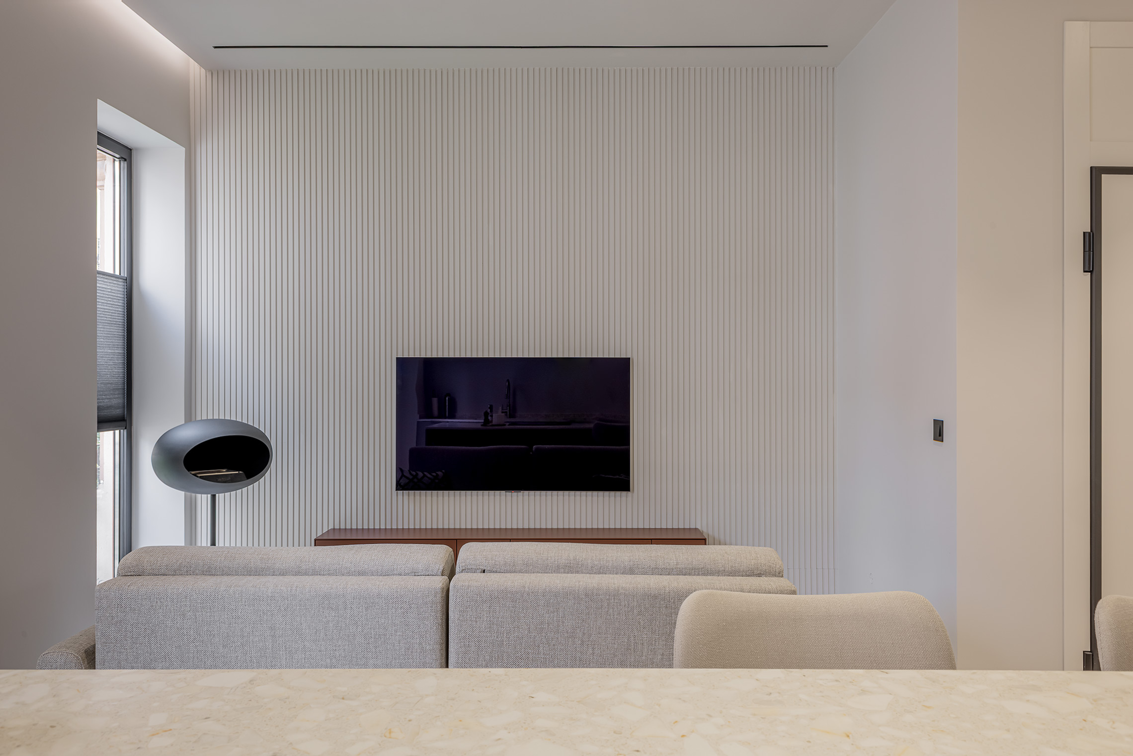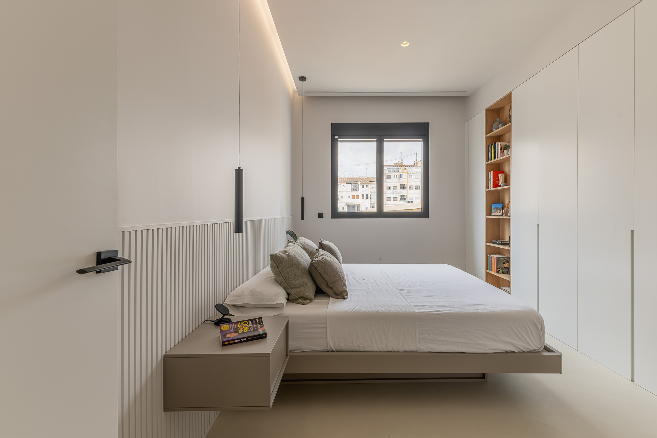 Comfort is ensured thanks to centralized air conditioning with Wi-Fi control, concealed-frame windows with thermal break and acoustic/thermal glazing, and sound-absorbing wall panels in the living room and bedroom. Additionally, the property includes a custom laundry area with space for both washer and dryer.