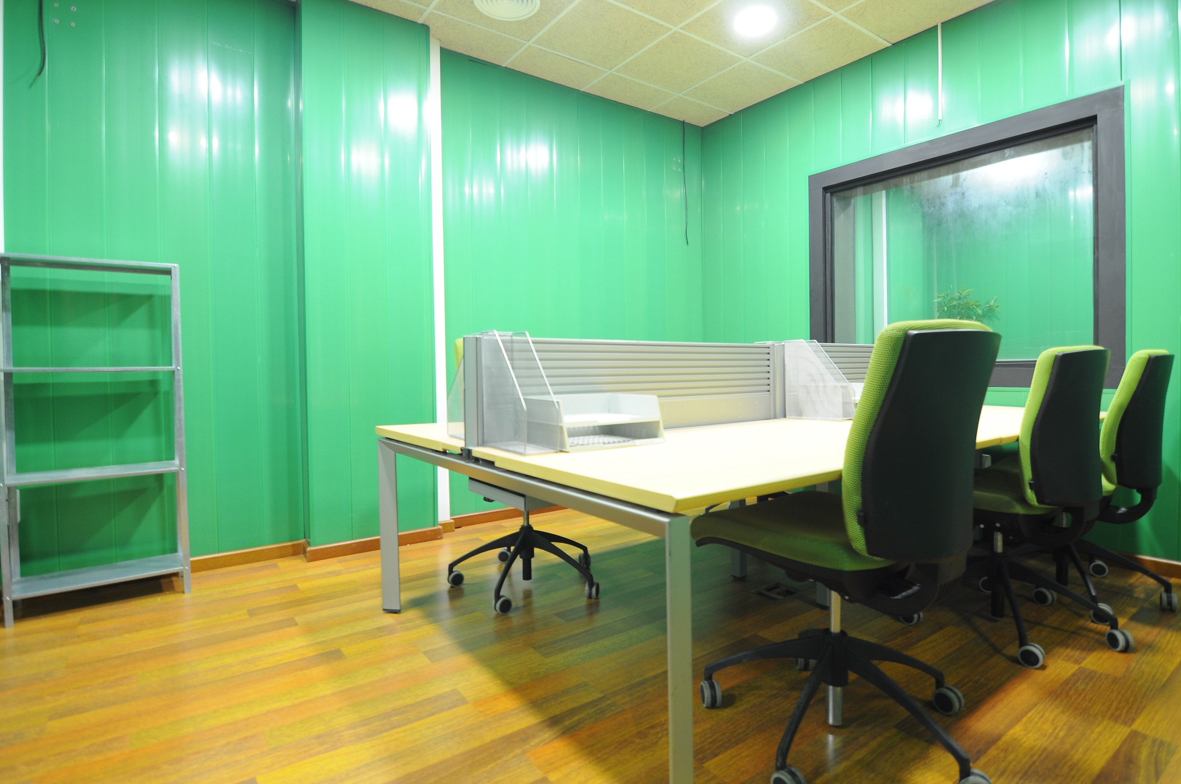 INTERIOR: Central location on one floor of 450 m2. With great staff capacity. Totally soundproofed, lots of offices, toilets and a large conference room. Currently in operation as coworking of different companies.