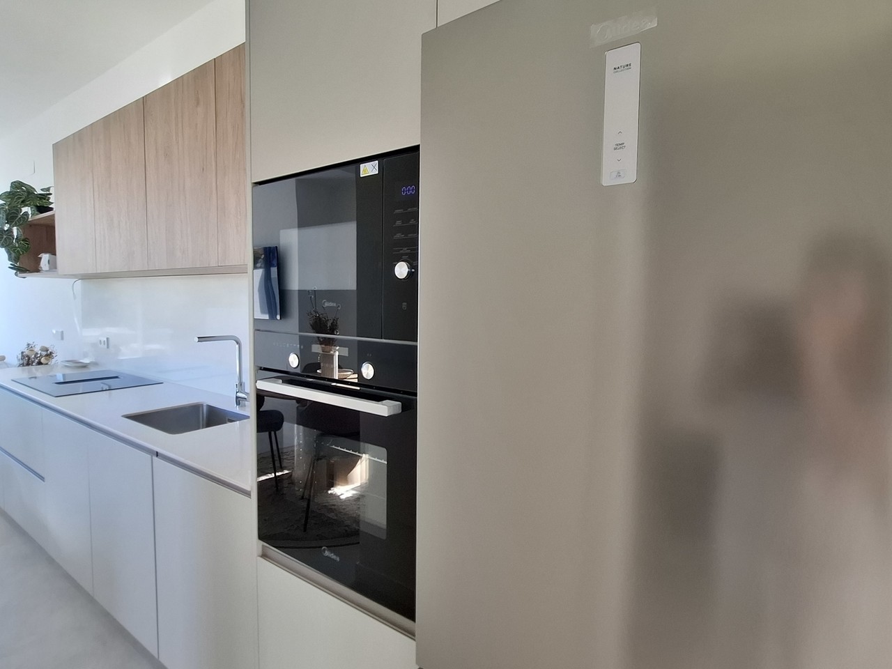 The finish will be made with ultra-smooth white water-based paint, except kitchen with washable plastic paint.