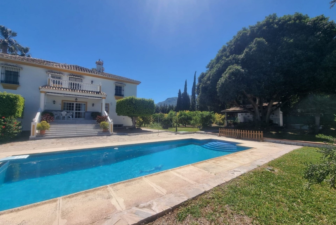 Beautiful country house in Alhaurín El Grande. Located very close to the town, this charming estate offers excellent access and spectacular open views of the valley and the Sierra of Alhaurín El Grande. The property is fully fenced and features an electric entrance gate. Within the plot, there are two houses, a summer kitchen, a private swimming pool, and a tennis court. Main House The main house is spread over three floors: basement, ground, and top floor. • Basement: spacious garage with capacity for several vehicles, utility room, storage room, full bathroom, and a cosy living room. • Ground floor: beautiful entrance hall, large living room with fireplace, and access to a front terrace with views. The dining room also connects to a pleasant rear terrace with direct access to the pool and gardens. This floor also includes an independent kitchen, a full bathroom, and one bedroom. • Top floor: four large and bright bedrooms and two full bathrooms, one of which is en-suite. The house features white marble floors, white lacquered aluminium windows, wooden doors, and high-quality materials throughout the construction. Exterior Outside, the property offers a very private pool, a barbecue area or summer kitchen, and a guest house spread over two floors: • Ground floor: living room, kitchen, full bathroom, and one bedroom. • Top floor: two bedrooms with vaulted ceilings and an additional bathroom. The property has access to municipal water, a private well, and there is also another well with access rights benefitting the plot. The entire plot is perfectly fenced and has unbeatable access. The listing agent, on behalf of the vendor, provides this information as guidance only and is not contractual. While efforts have been made to ensure accuracy, buyers should verify all details through their own inspections and inquiries. The data may be subject to errors, price changes, availability, or withdrawal without notice.