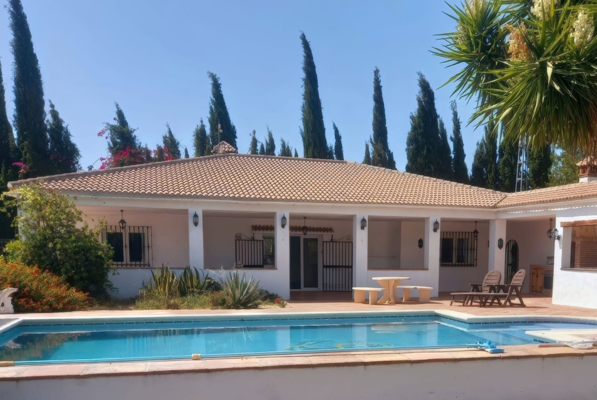 A lovely 3-bedroom, 2-bathroom country house, with excellent access to the local towns of Alhaurín El Grande and Coín, and only a 20-minute drive to Málaga airport. The house sits on a flat plot of land with mature gardens and a beautiful swimming pool. It is surrounded by terraces and has a summer kitchen, where you can relax and enjoy the mountain views. Inside there are 3 double bedrooms (the master bedroom is en-suite), a spacious living-dining room with a log-burning fire, and a fully fitted kitchen-diner. Away from the main house, with separate access, is a covered area for horses. Main features: • Garden and mountain views • Swimming pool • Air-conditioning • Fireplace • Summer Kitchen The listing agent, on behalf of the vendor, provides this information as guidance only and is not contractual. While efforts have been made to ensure accuracy, buyers should verify all details through their own inspections and inquiries. The data may be subject to errors, price changes, availability, or withdrawal without notice.