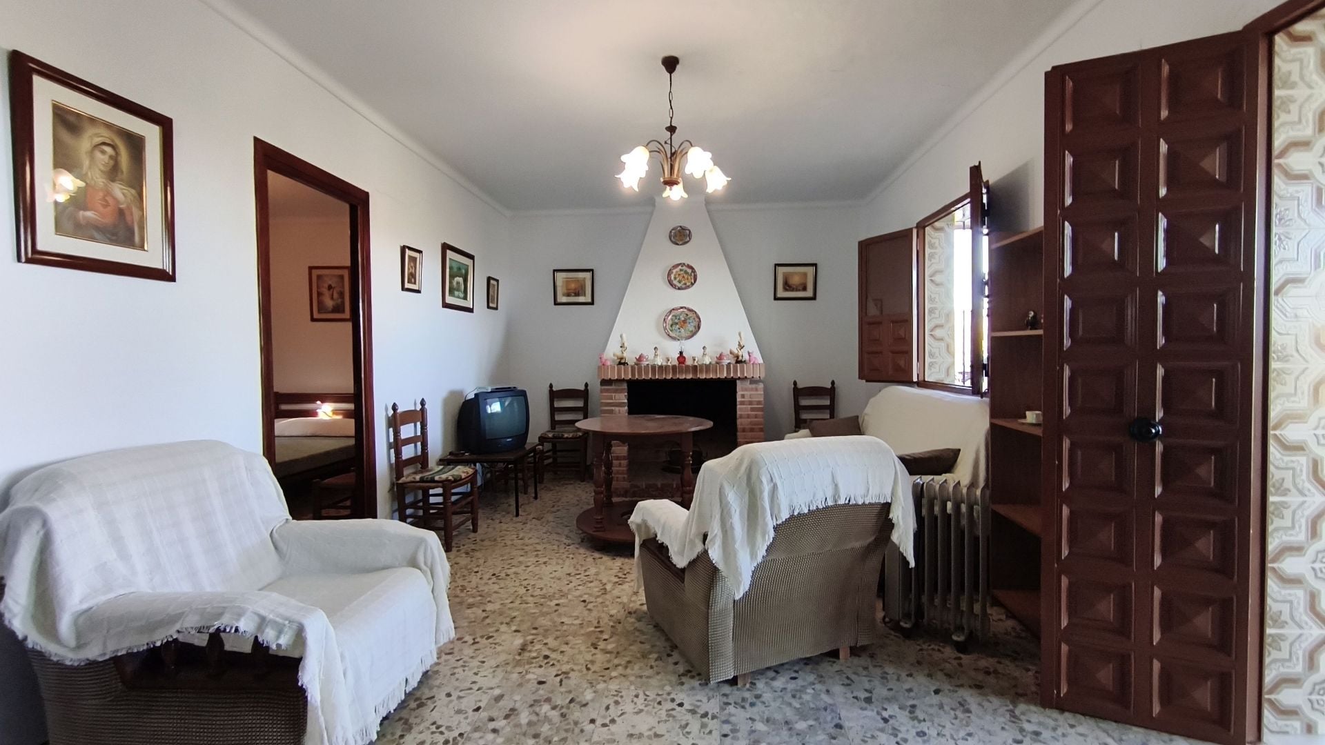 Outside, the finca offers a large independent storage room with access from both inside and outside the house, a covered porch ideal for outdoor living, a 50 m² swimming pool, and a 24 m² water deposit.