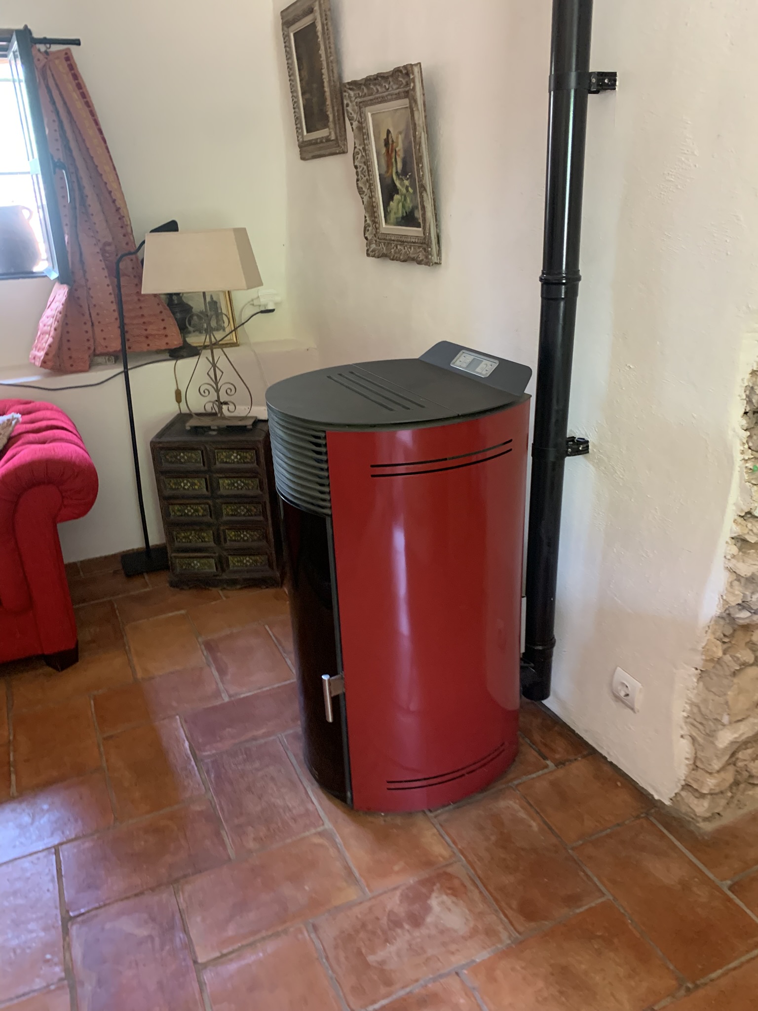 Upstairs, discover three generous double bedrooms with uninterrupted countryside views. A large landing – featuring its own pellet-burning stove that warms all the bedrooms – also has space for a sofa bed, ideal for extra guests. A family shower room completes this level.