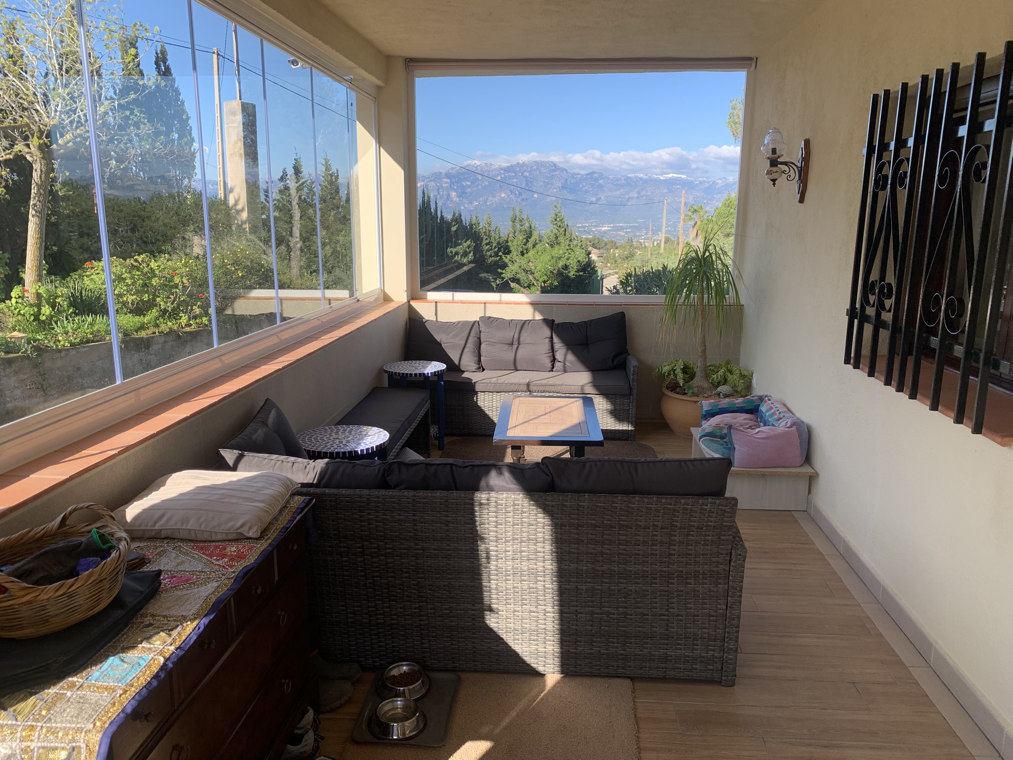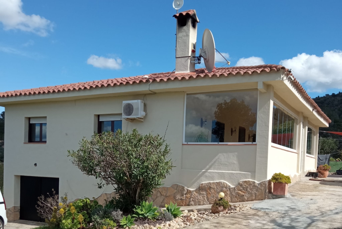 As you step inside, you’re welcomed by a spacious covered porch, ideal for relaxing and soaking in the refreshing mountain breeze. The porch is fitted with glass curtains, offering uninterrupted views of the breathtaking Els Ports mountain range.
