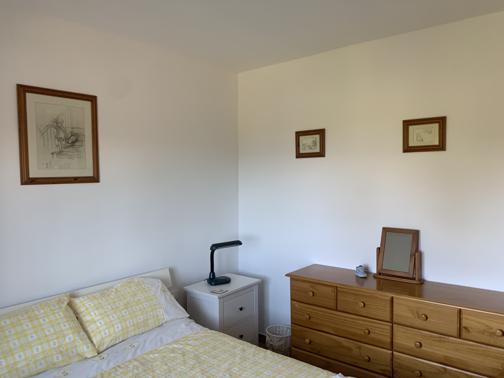 There are 2 double sized bedrooms (the master bedroom has electric heating and a modern en suite shower room (also with electric radiator) and a versatile small bedroom currently being used as a study, complete with a new pellet-burning stove.