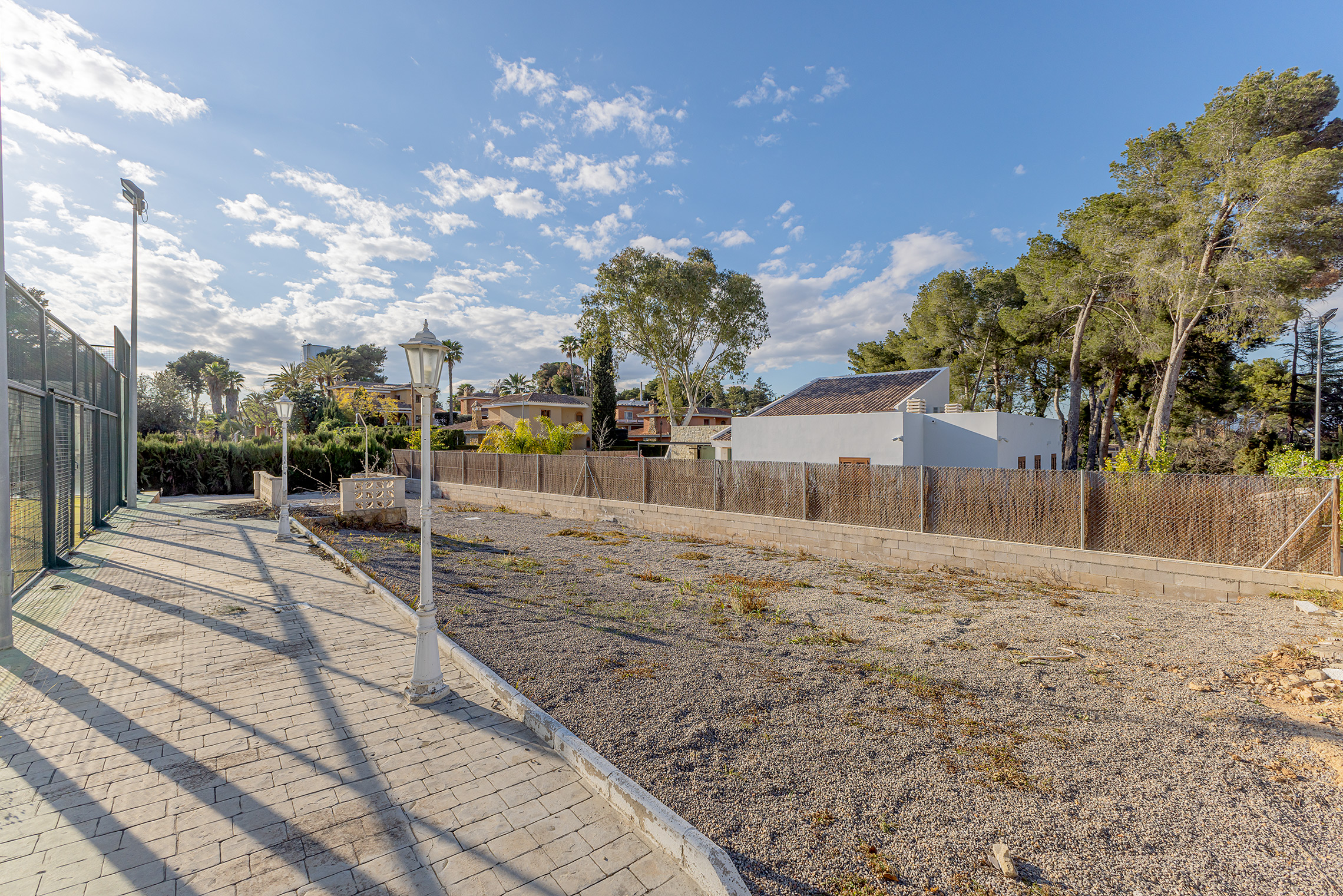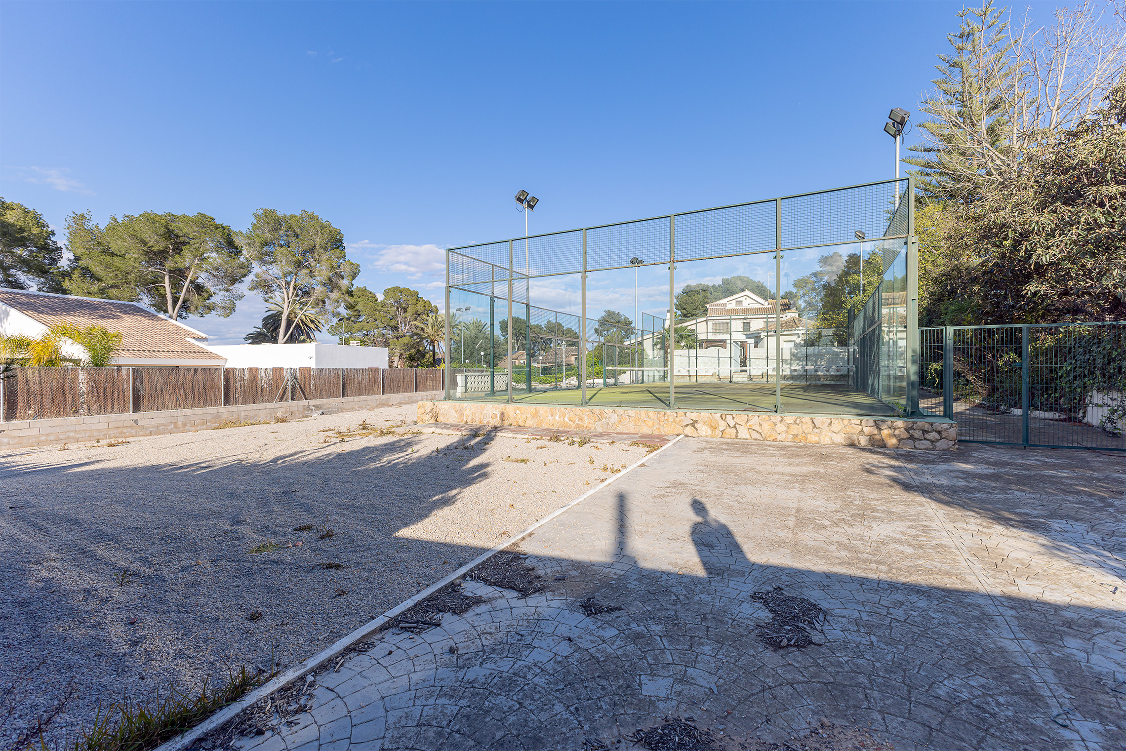 The land includes a paddle court, which will be dismantled by the property, allowing the space to be adjusted to the needs of the future owner. Additionally, the plot has electricity and water utilities at its edge, facilitating immediate development.