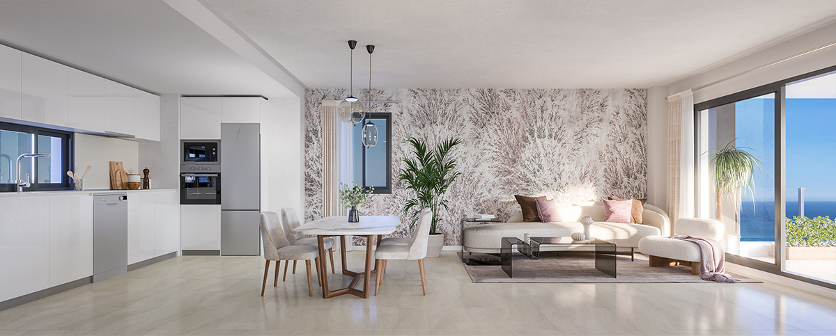 The exteriors of these penthouses are designed to maximize enjoyment of the Mediterranean climate. Each unit features a spacious terrace, ideal for relaxing or entertaining guests while enjoying panoramic views. The complex also offers landscaped areas that provide a green and serene environment, perfect for peaceful walks or outdoor activities.