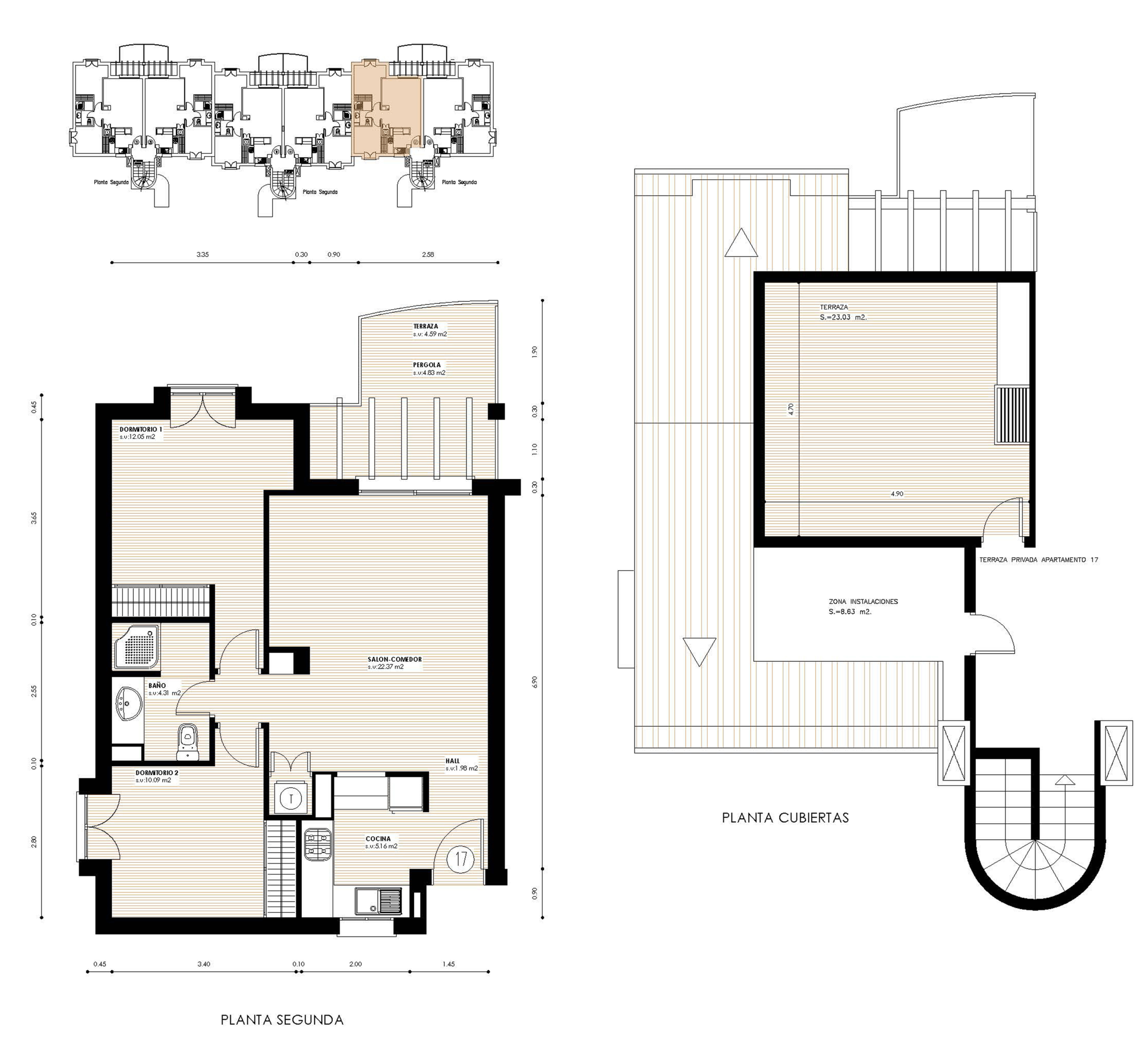 Situated on the 2nd floor, the apartment offers a surface area of 87.82 m², plus a private rooftop terrace of 23 m², accessible via an external staircase.