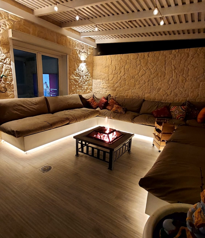 On the lower floor, you'll find a bright living-dining room with direct access to the terrace, which features a summer kitchen, wood-fired oven, and chill-out area – ideal for relaxing or entertaining. This level also includes the main bedroom and a full bathroom.