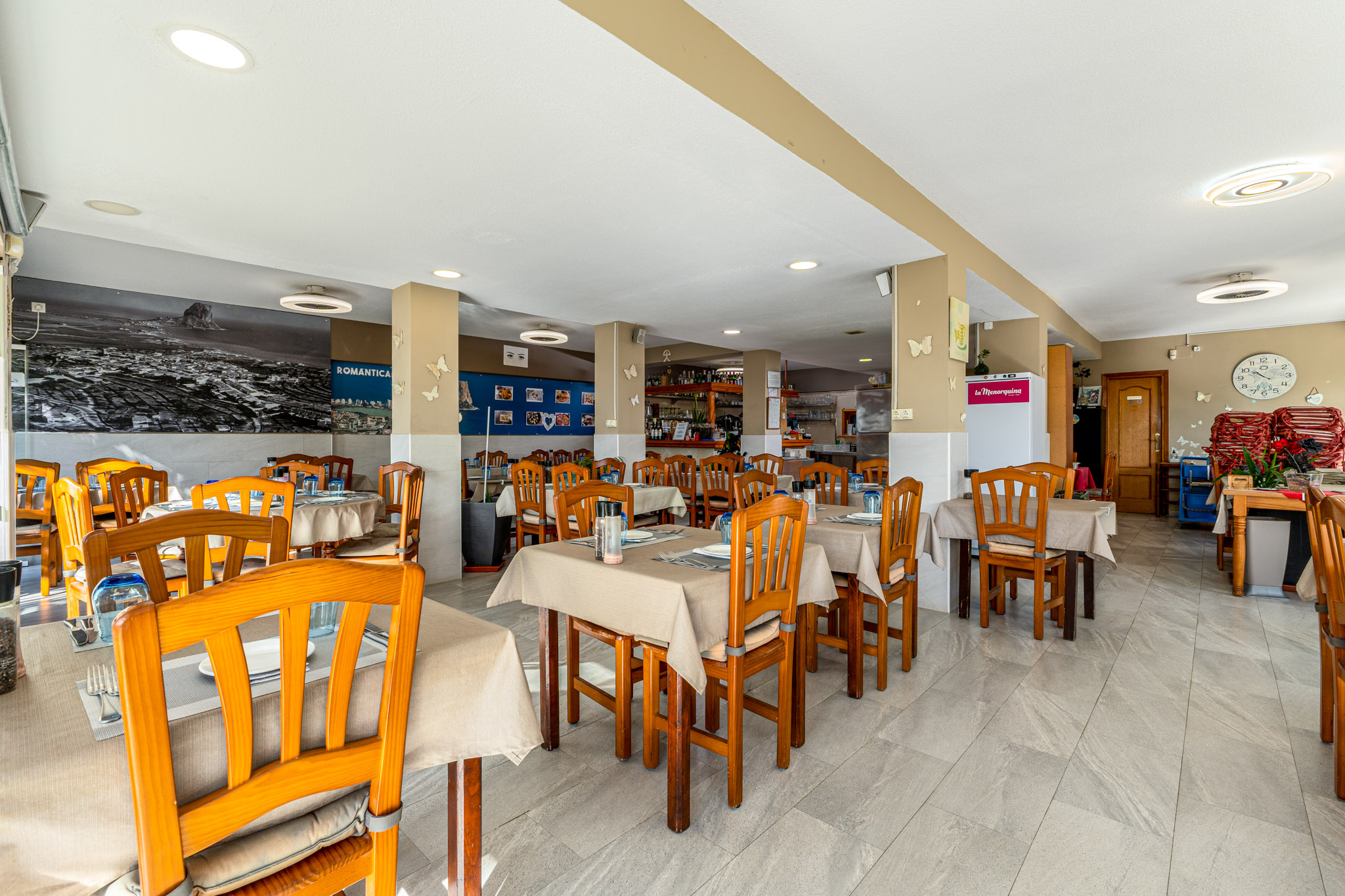 The restaurant is just steps away from Calpe’s sandy beach and features a terrace and large windows that can be fully opened during the hot summer months. This property is being sold without business transfer.