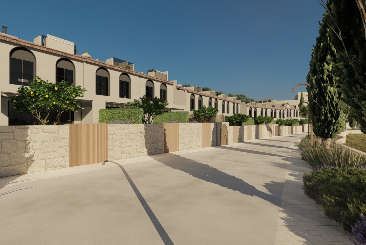 The townhouses feature outdoor spaces designed for enjoyment and relaxation. Each property includes a private garden, ideal for creating a personal outdoor oasis. Additionally, the terraces offer extra space to enjoy the Mediterranean climate, whether for al fresco dining or simply relaxing. The inclusion of a private pool in each home adds a touch of luxury, allowing residents to refresh in the comfort of their own home.