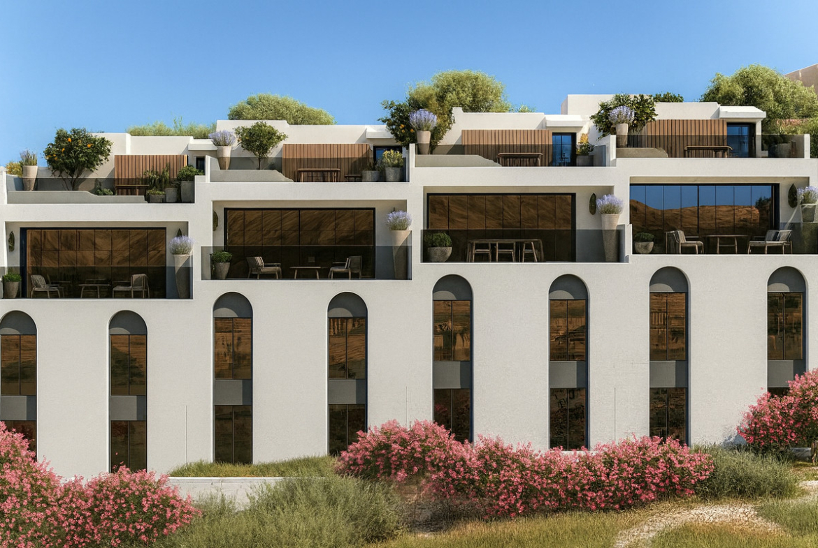 The townhouses draw inspiration from southern European architecture, reinterpreted through a contemporary lens to create homes that are both elegant and inviting. Clean architectural lines are softened by natural materials and warm tones, establishing a strong sense of character and connection to the surroundings.