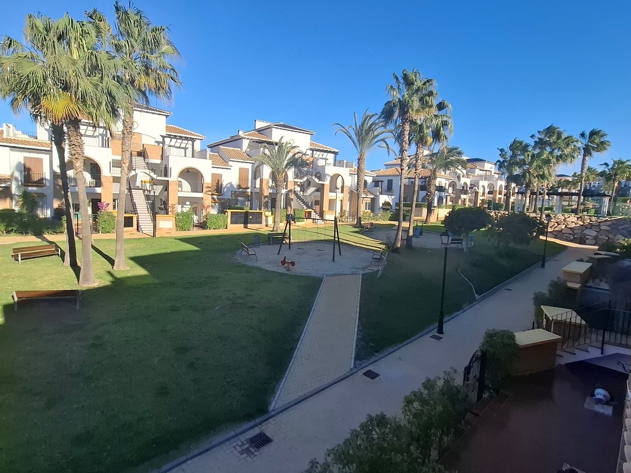 The secure gated community offers excellent facilities, including two swimming pools, one of which is a heated indoor pool ideal for the cooler winter months. There are also well-maintained communal gardens and a separate children’s play area.
