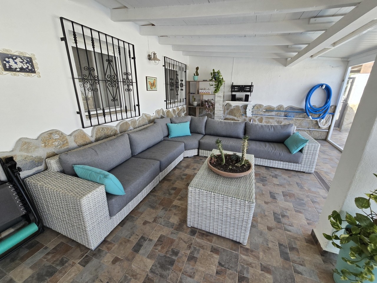 Entrance into the property leads through a large covered terrace that has had a fly free enclosure fitted, making this an ideal outdoor living and dining area with stunning views of the surrounding countryside and distant mountains.