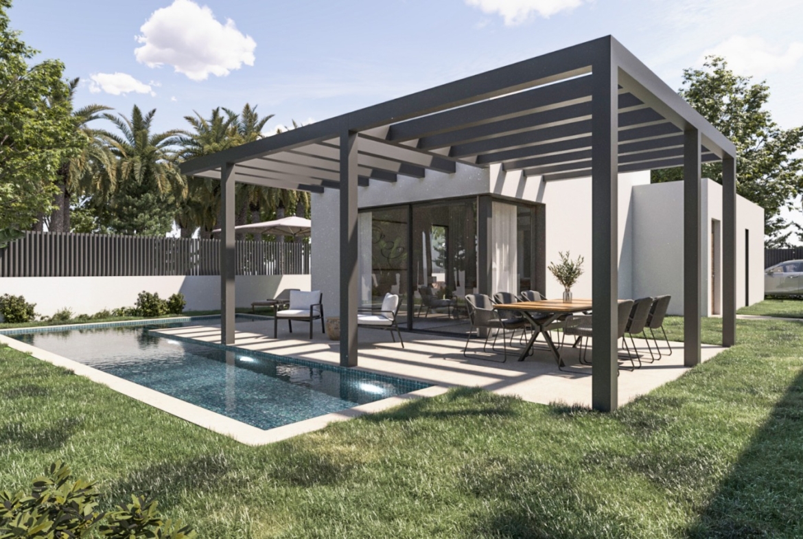 A garden is optional and not included in the standard price, offering flexibility for those who want to design their own outdoor space. However, each villa has several terraces, pergolas and a paved parking area. Thanks to its strategic location, you can enjoy privacy, tranquillity and nature, while the charming, historic centre of Alcalalí and other amenities are within walking distance.