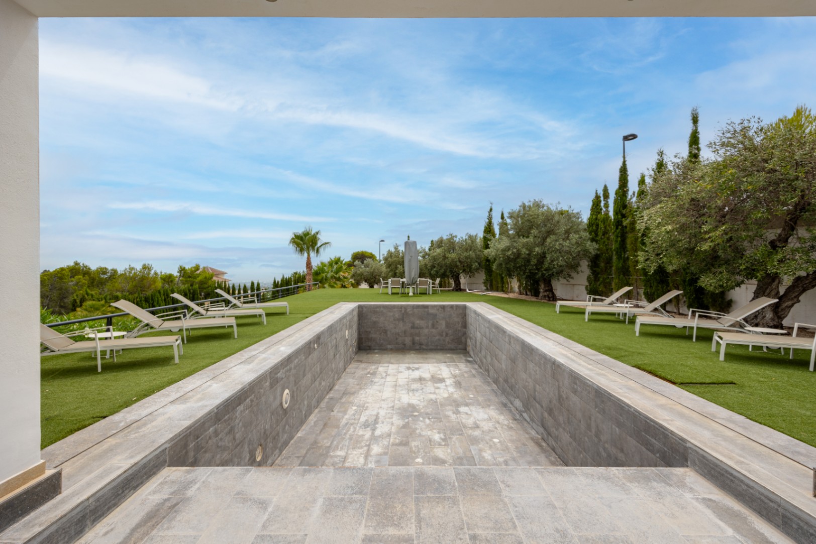 A luxurious villa of 330 square meters is offered on a plot of 2000 square meters in the prestigious area of Monterrico. This impressive property extends over two levels. The main entrance of the villa is located on the first floor. On this floor, we find a spacious living room and dining room that have a warm woodburning fireplace and large windows that open onto a covered terrace that extends to the pool.The bedrooms are designed with fitted wardrobes, ensuite bathrooms and individual terraces. The kitchen is independent and has direct access to a terrace next to the pool. In addition, on this floor, there is a toilet for greater comfort.The ground floor offers an additional entertainment area, which can be used as a games room or lounge, and has access to a large covered terrace and the beautiful gardens. On this floor, there are also two bedrooms with fitted wardrobes and private bathrooms. Likewise, there is a separate laundry room and a storage room.The pool, which measures 4 x 12 meters, is overflow and uses salt water. It is equipped with a selfcleaning system, a countercurrent swimming pump, a heat pump to keep it heated, and LED lighting with red, green, and blue color options. An automated cover of insulating louvers keeps the water clean and hot.The orientation of the house is to the south, which guarantees excellent natural lighting. The property has high quality air conditioning and heating systems from Panasonic, as well as a comprehensive security system. A large garage of approximately 50 square meters complements the space, together with an outside parking area.The villa offers spectacular panoramic views that encompass the sea, the mountains, the pool and the beautiful low maintenance Mediterranean style gardens. In addition, there is the option of enabling an additional area of about 50 square meters to create a wine cellar, a gym, a cinema room or any other space according to your preferences.