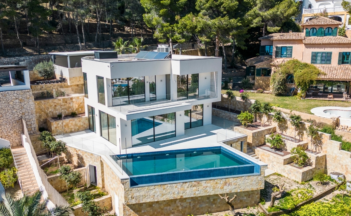Magnificent threestory villa with stunning sea and port views, located in the Mascarat urbanization near the center of Altea. Just steps away from the beach and within walking distance of the MasiMas supermarket, this exquisite home was built in 2020 and completed in 2021 with the highest quality construction and decor. With a total surface area of 353 m2 and a 965 m2 plot, this villa offers a beautiful infinity pool and a garage for two cars. As you enter the home on the third floor, you will find a spacious foyer and three bedrooms. The master bedroom boasts a dressing room, bathroom, and a large corner terrace with panoramic sea views. The second bedroom features a builtin wardrobe, a bathroom, and a private terrace also with sea views. The third bedroom has a builtin wardrobe and a bathroom. Descending the stairs, you will find the next level, featuring a living room with a fireplace, a dining room, an openplan kitchen with an island, a guest bathroom, and a laundry room. All rooms lead out to a terrace with a pool and an outdoor shower. On the ground floor, there is a guest bedroom with a large dressing room and bathroom, a Finnish sauna, and several service rooms. This villa is certified for energy efficiency class "A", constructed with modern materials of the highest quality, and equipped with Miele brand appliances. Technical equipment includes Technal aluminum windows with double glazing, Somfi motorized blinds, Schluter underfloor heating, Mitsubishi air conditioning with heat recovery system, Zhender mechanical ventilation, solar panels, heat pumps, Airzone intelligent air conditioning system, Tegi video intercom with App, video surveillance cameras and alarm, plus fiber optic internet. The villa is sold fully furnished with luxury furniture. The property is located in a very quiet area with lush vegetation and no noise. Within a short driving distance, there are several beaches, seafood restaurants, the Marina Greenwich yacht harbor, the Don Cayo golf course, and the Altea Hills tennis club.