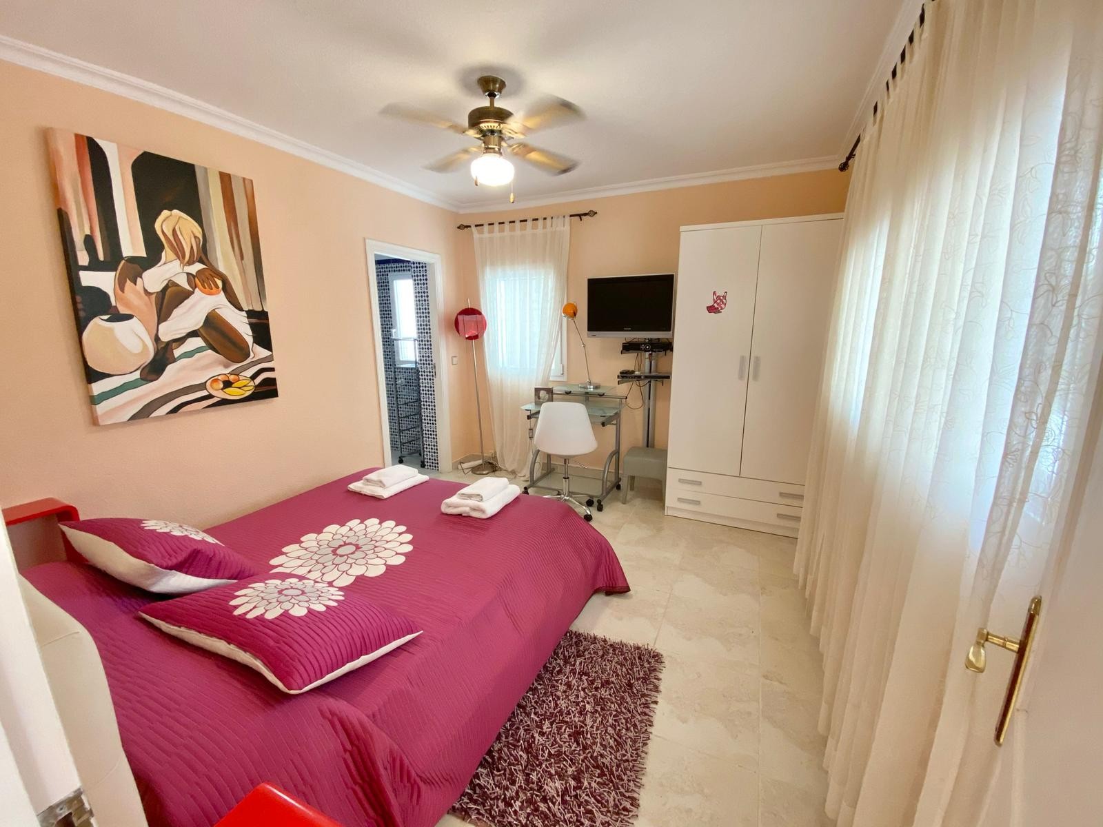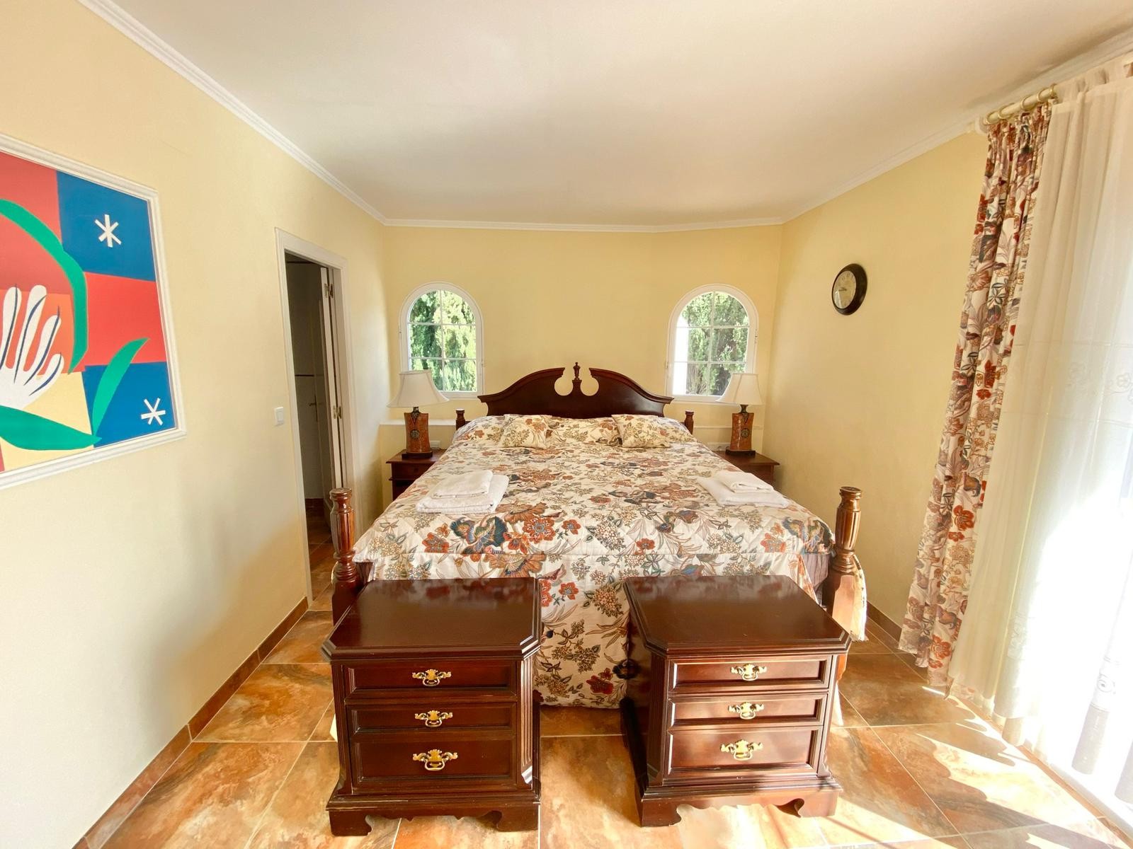 The villa blends traditional Spanish character with modern comfort and is equipped with hot and cold air conditioning as well as gas heating for year-round living.