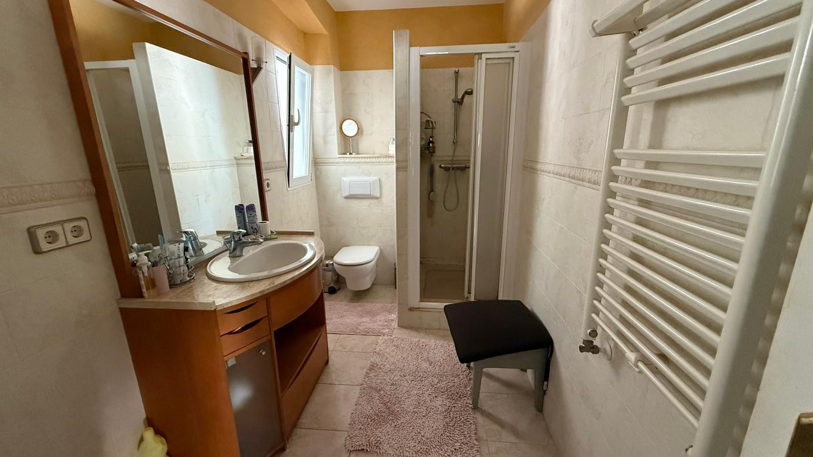The exterior spaces are designed to fully embrace the Mediterranean lifestyle. A private swimming pool, sauna and dedicated barbecue area create the perfect setting for relaxing or hosting family and friends. In addition to the garage, there is ample parking space for three to four vehicles within the property.