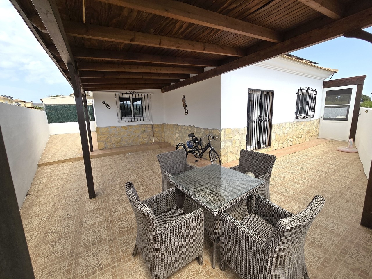 The property is equipped with air conditioning throughout, solar panels, a heated swimming pool, and an irrigation system for the garden. The independent casita offers excellent accommodation for guests or potential rental income.