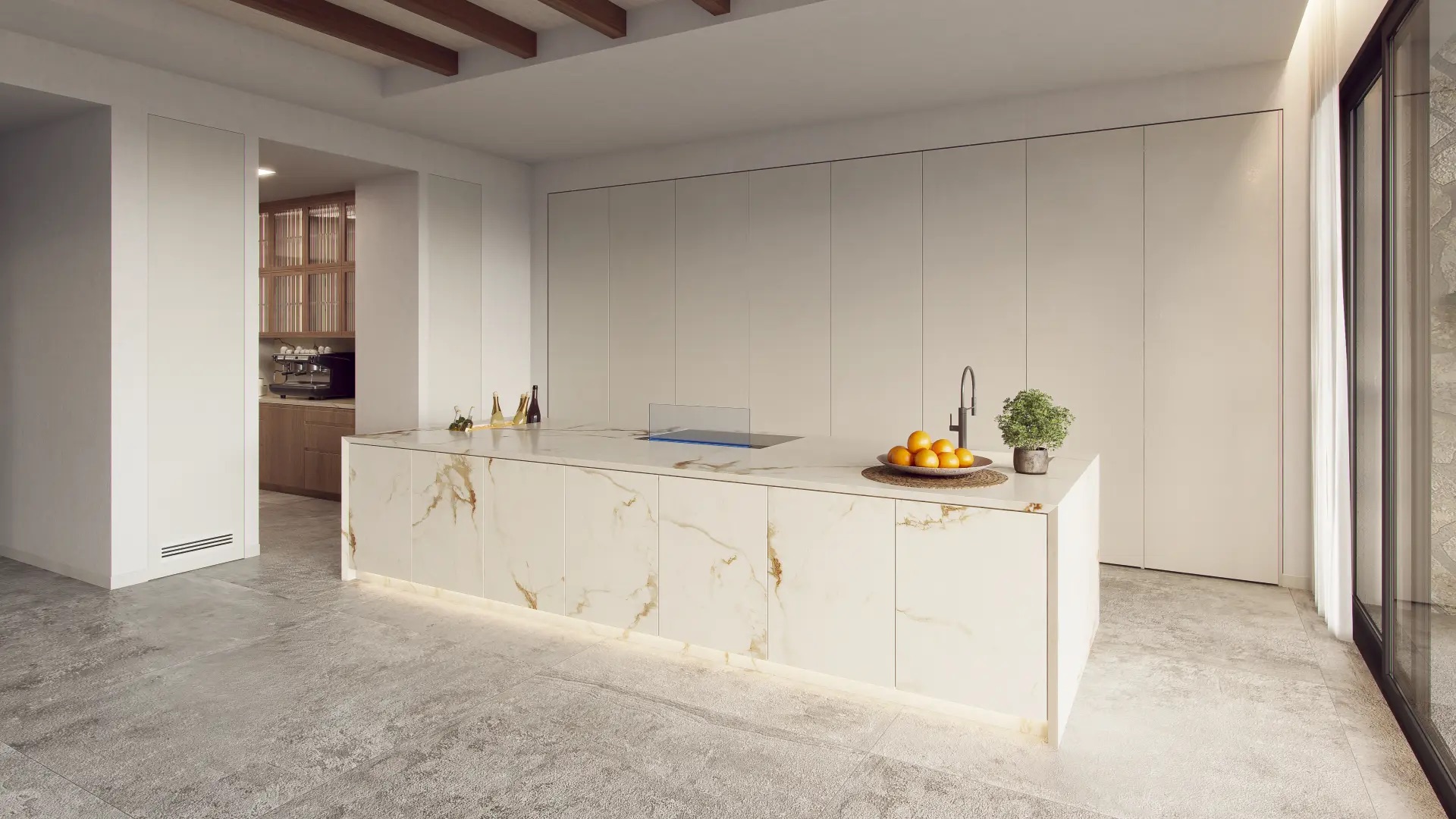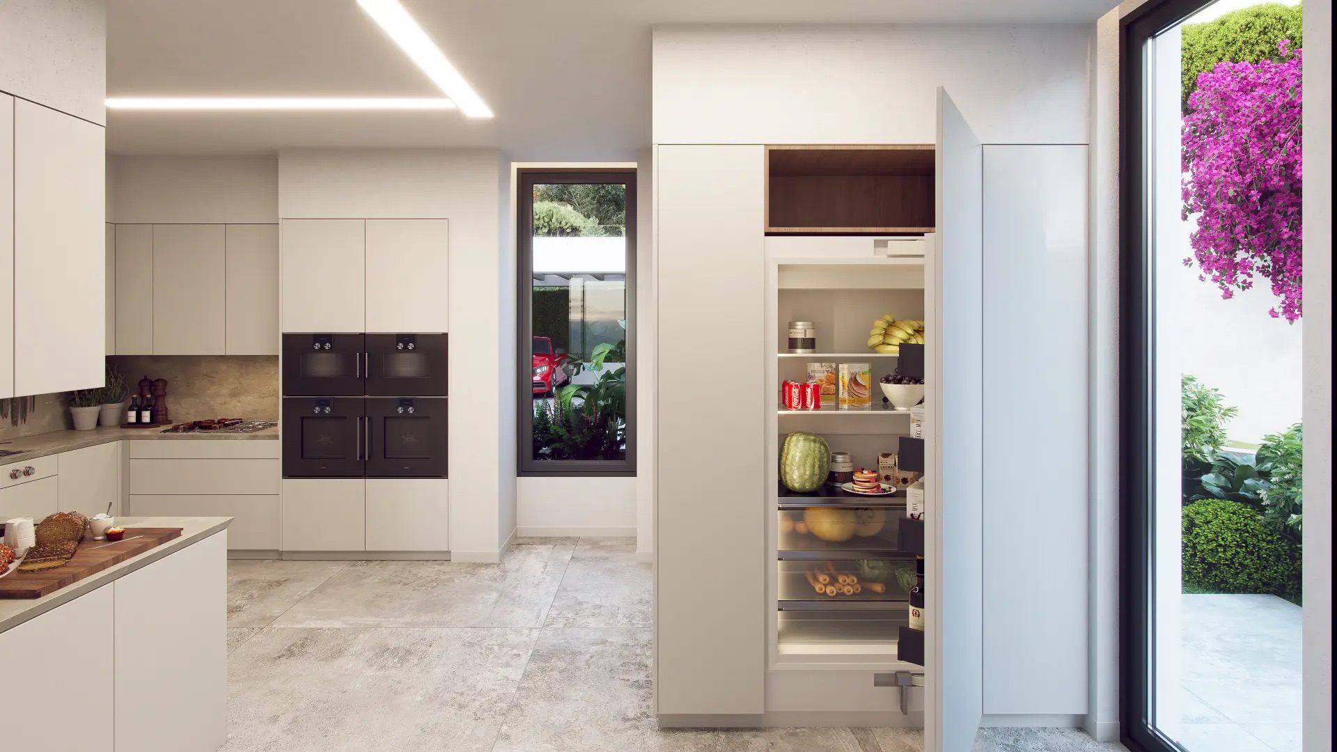 Inside, the villa is equipped with the latest home automation technologies, allowing full control of the facilities. High-end appliances are included, ensuring functionality and style. Built-in wardrobes offer ample storage space, while the video intercom provides security and convenience. The layout includes a spacious terrace and a garage, adding value and practicality to the ensemble.
