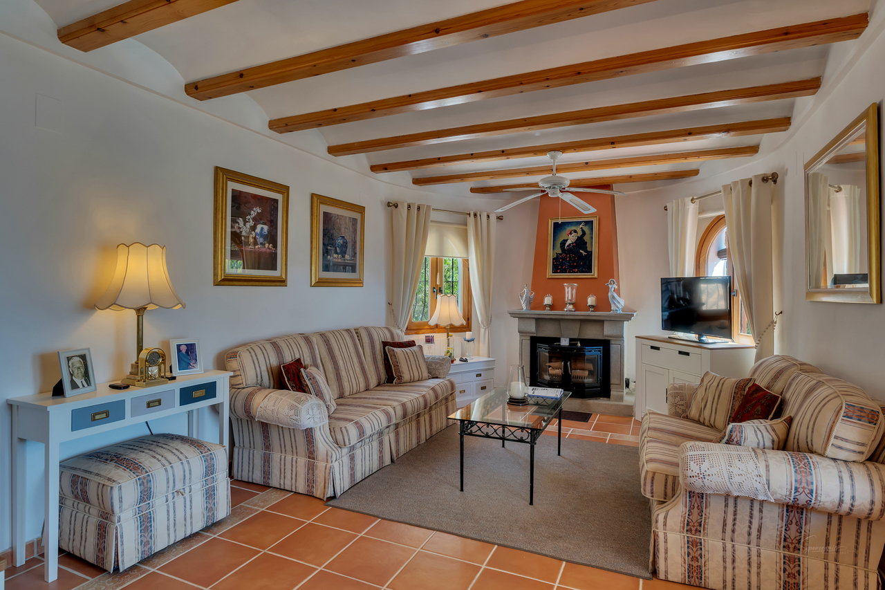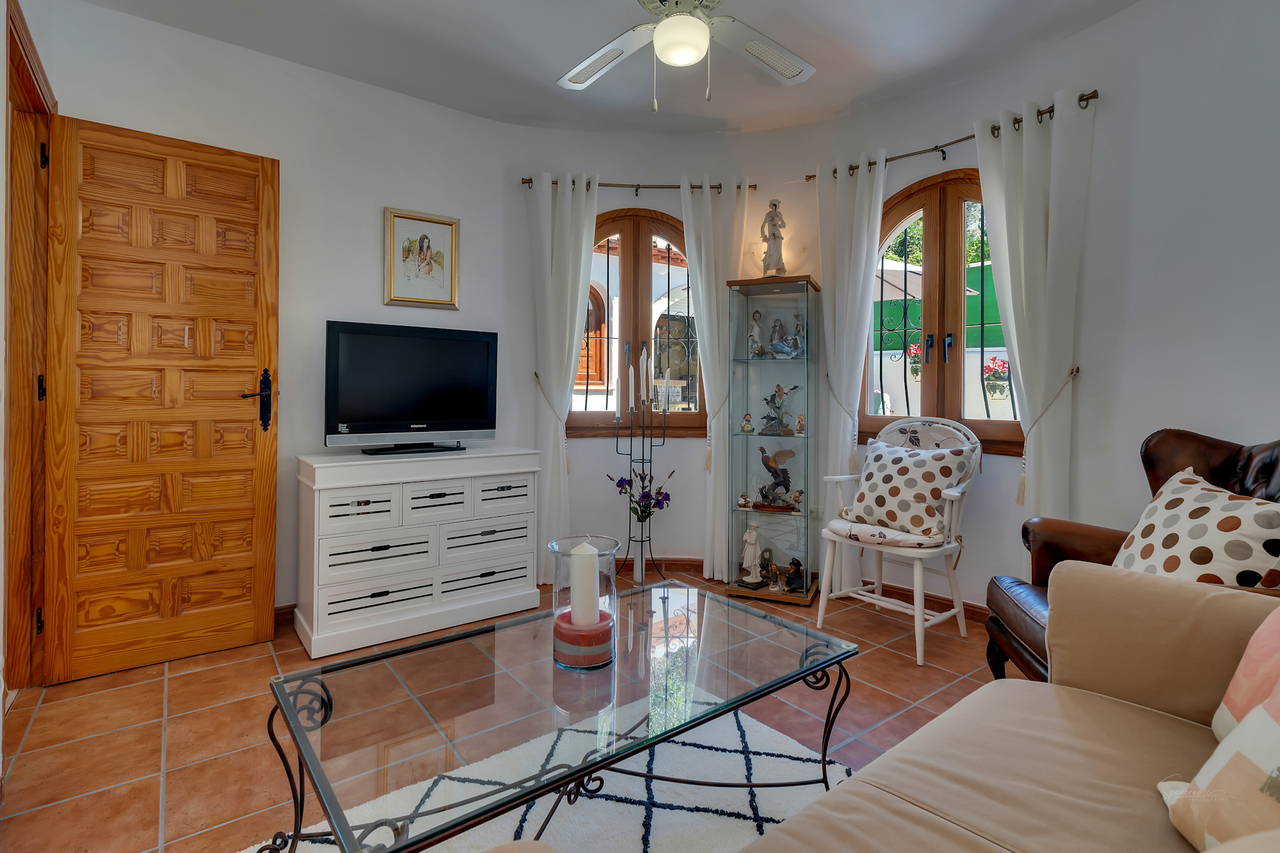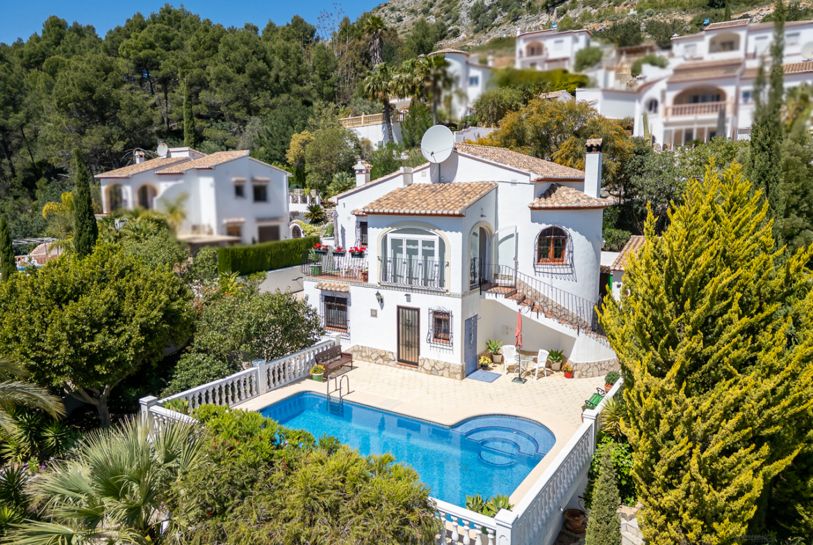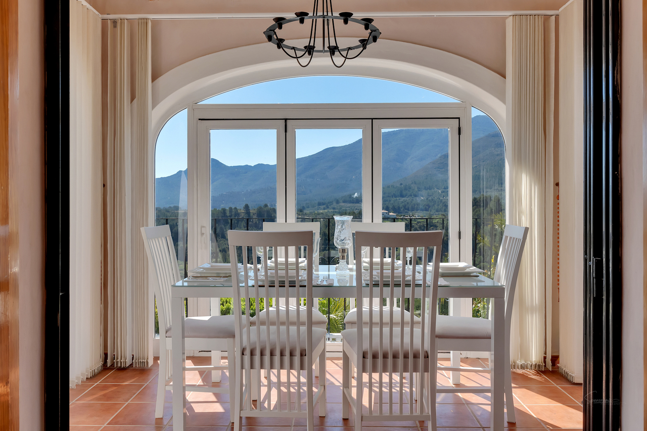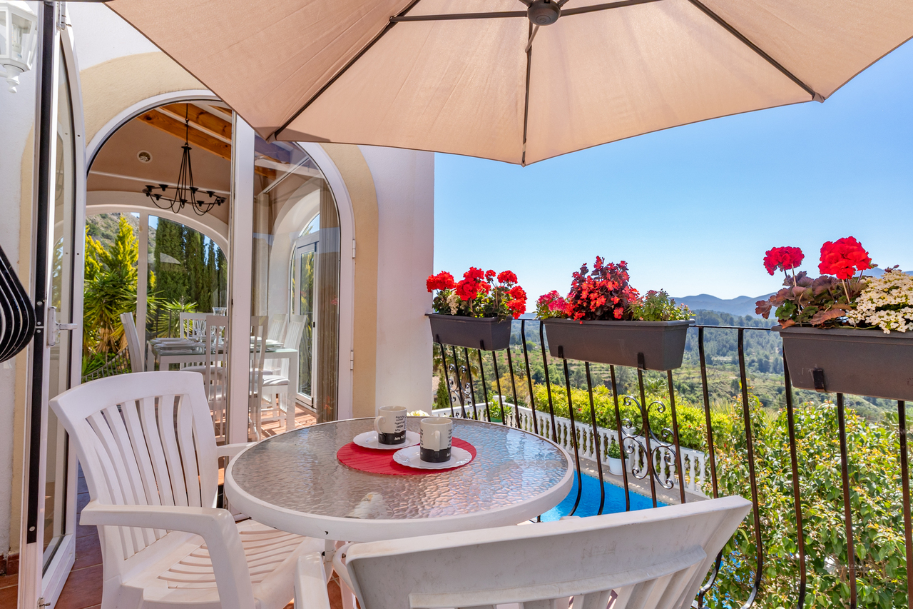 This beautifully maintained, family villa is nestled in the rural peace and tranquility of Benigembla. Situated in a highly desirable residential area, this two-storey home is set on an 833 m² plot with nearly 200 m² of built space, the villa enjoys a south-facing orientation, ensuring abundant natural light and stunning mountain views. An external staircase leads to the upper floor. The covered terrace has been glazed to make this a wonderful dining room with incredible views. From here, double doors open into a bright and spacious living room with a feature a wood-burning fireplace. This level also includes a modern, fully equipped kitchen, two double bedrooms with built-in wardrobes, and two bathrooms. The ground floor features a self-contained apartment. This has its own entrance, two bedrooms, two shower rooms, a kitchen with a laundry area, and a living room. One of the bedrooms opens directly onto the pool terrace. This apartment is perfect for all your summer guests. Additionally it offers an interesting rental possibilty for those looking to create an extra income. The property is equipped with gas central heating supplied by a communal tank and is connected to mains water, electricity, and sewage. A standout feature is the 22 m² summer kitchen, fully fitted and enclosed with a roller blind. It comes with a bar, cooking area, and a large dining table to provide everything you need to host family gatherings and summer parties. The 8 x 4 m swimming pool, which includes an outdoor shower, has open terrace for sunbathing and stunning views from every aspect. Also to the outside; a garage (currently used as a workshop or hobby space), a carport and additional parking for several vehicles. Furthermore, to the lower level, there is an extra storage area. The Mediterranean garden benefits from an automatic irrigation system. The centre of the pueblo of Benigembla is just 2 km away. Benigembla is a traditional Spanish village with a great community spirit and all your everyday amenities. The location is ideally placed to explore the whole of the Marina Alta. The coastal towns of Dénia and Jávea are approximately 35 to 40 minutes away and are renowned for their sandy beaches, clear coves, marinas, boutiques, and excellent restaurants. The Portal de la Marina shopping centre and the AP-7 motorway are both within a 25 to 30-minute drive, providing easy access to Alicante and Valencia airports, each about an hour away. The Vall de Pop area is very popular for hiking, cycling, exploring historical routes, and enjoying traditional local fiestas. This exceptional family home has it all! A spacious layout with versatile rooms to suit your lifestyle, fabulous outdoor living spaces, a private pool etc, it combines privacy, comfort, and Mediterranean charm—making it ideal as a permanent home, holiday retreat, or investment opportunity in a traditional village setting. Call now for further information and a viewing appointment.