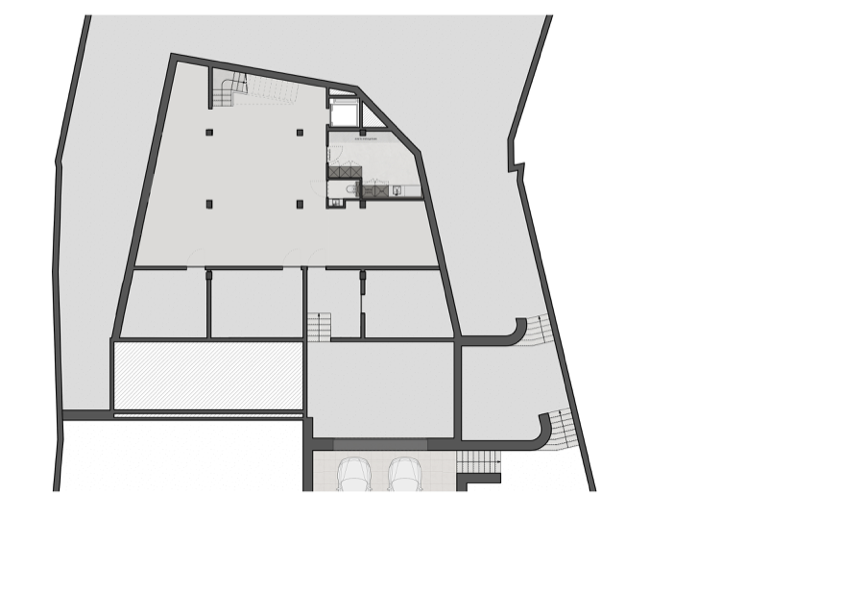 The first floor features four bedrooms designed with attention to detail and comfort, along with three full bathrooms and a functional hallway. The second floor, which also serves as the main entrance area, includes a hallway and a garage with capacity for several vehicles.