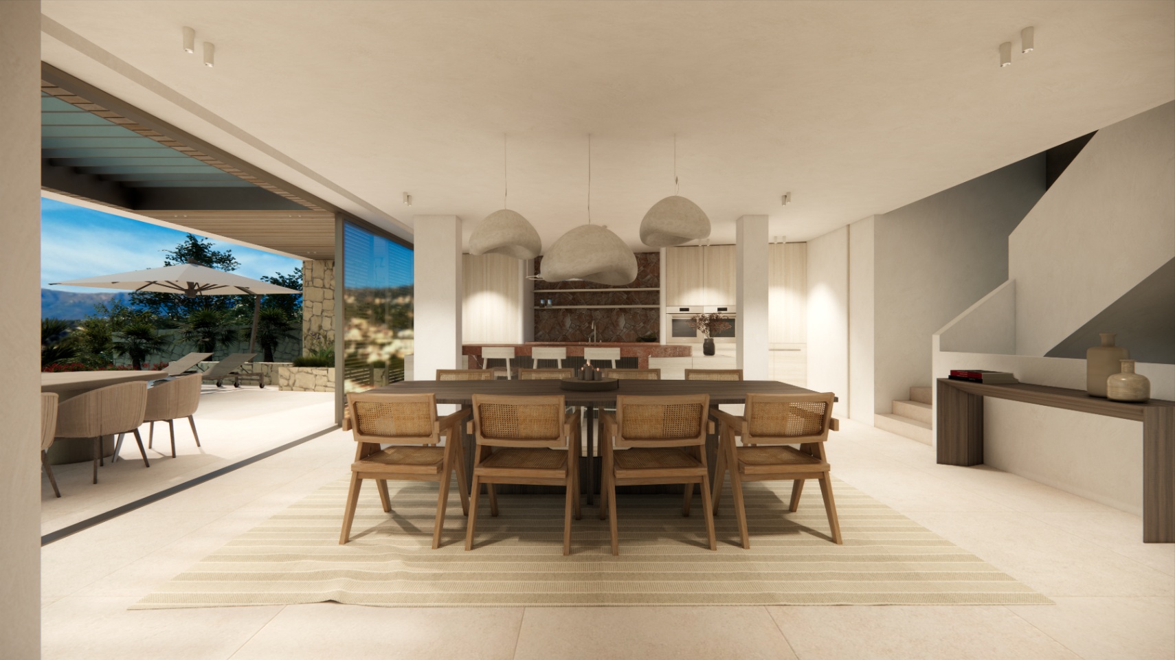 Located in the charming town of Benissa on the Costa Blanca, this stunning Ibizan-style residence combines traditional Mediterranean elements with modern, elegant design. This exceptional home sits on a 770 m² plot, providing a spacious and welcoming environment.