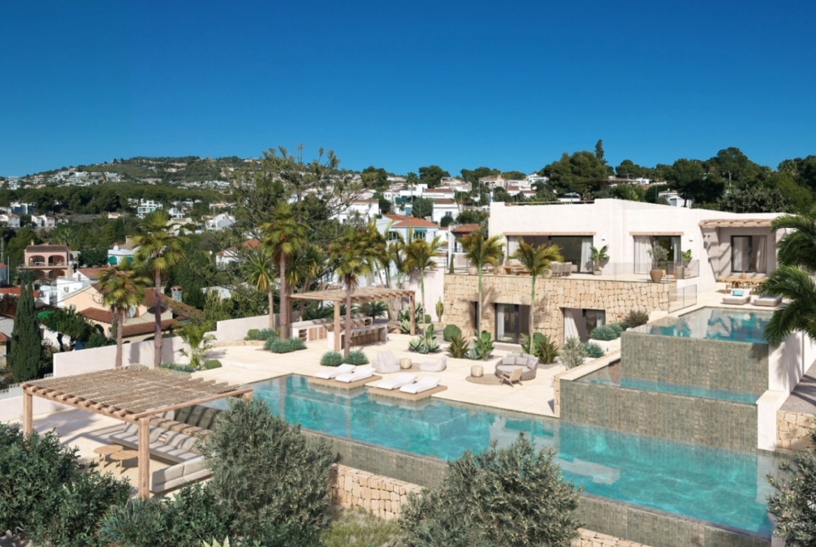 Luxury villa under construction with sea views on the coast of Benissa (Costa Blanca, Alicante). This Ibiza-style villa with beautiful sea views is located 400 metres from Fustera Beach, restaurants and supermarket.