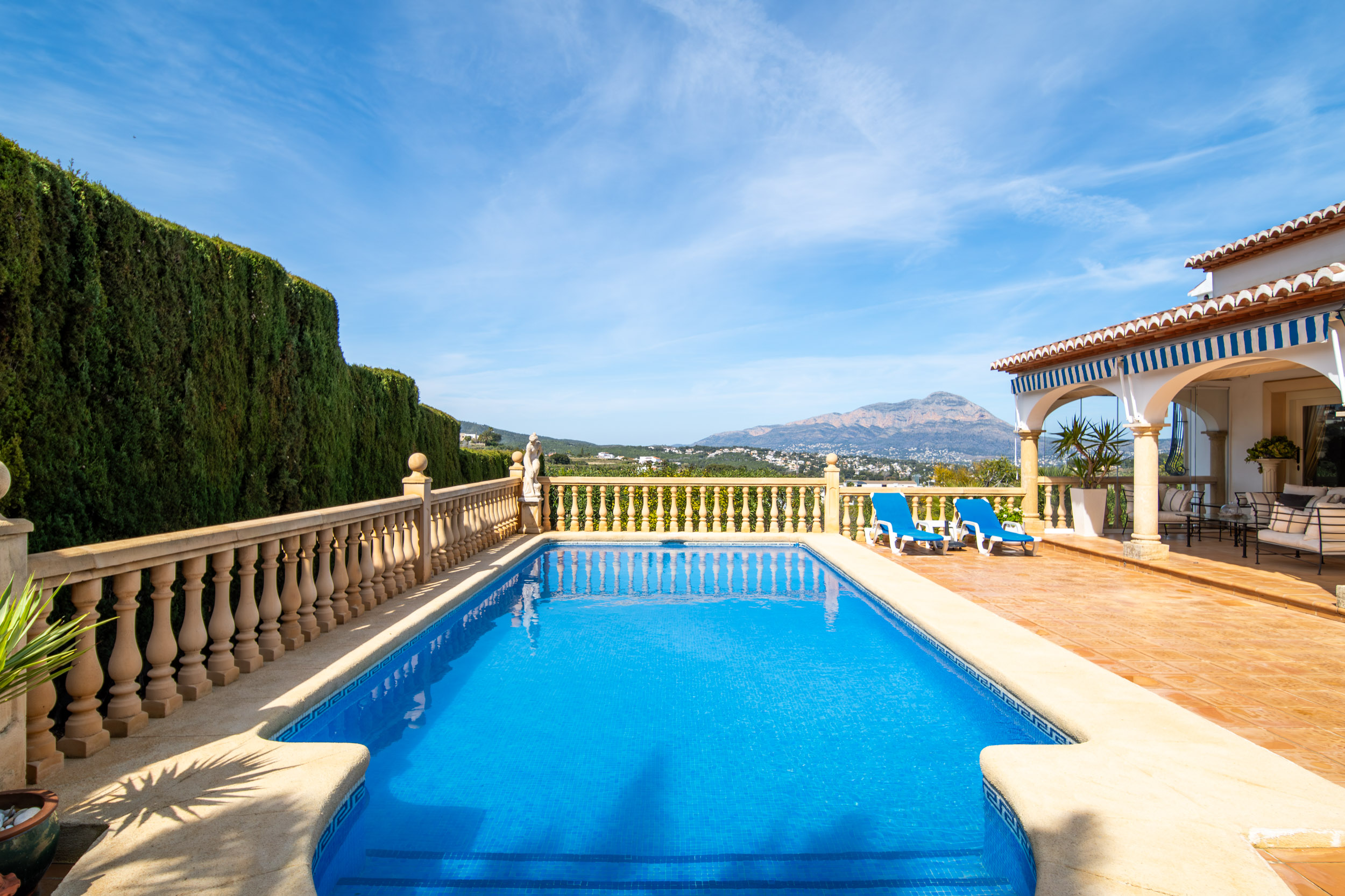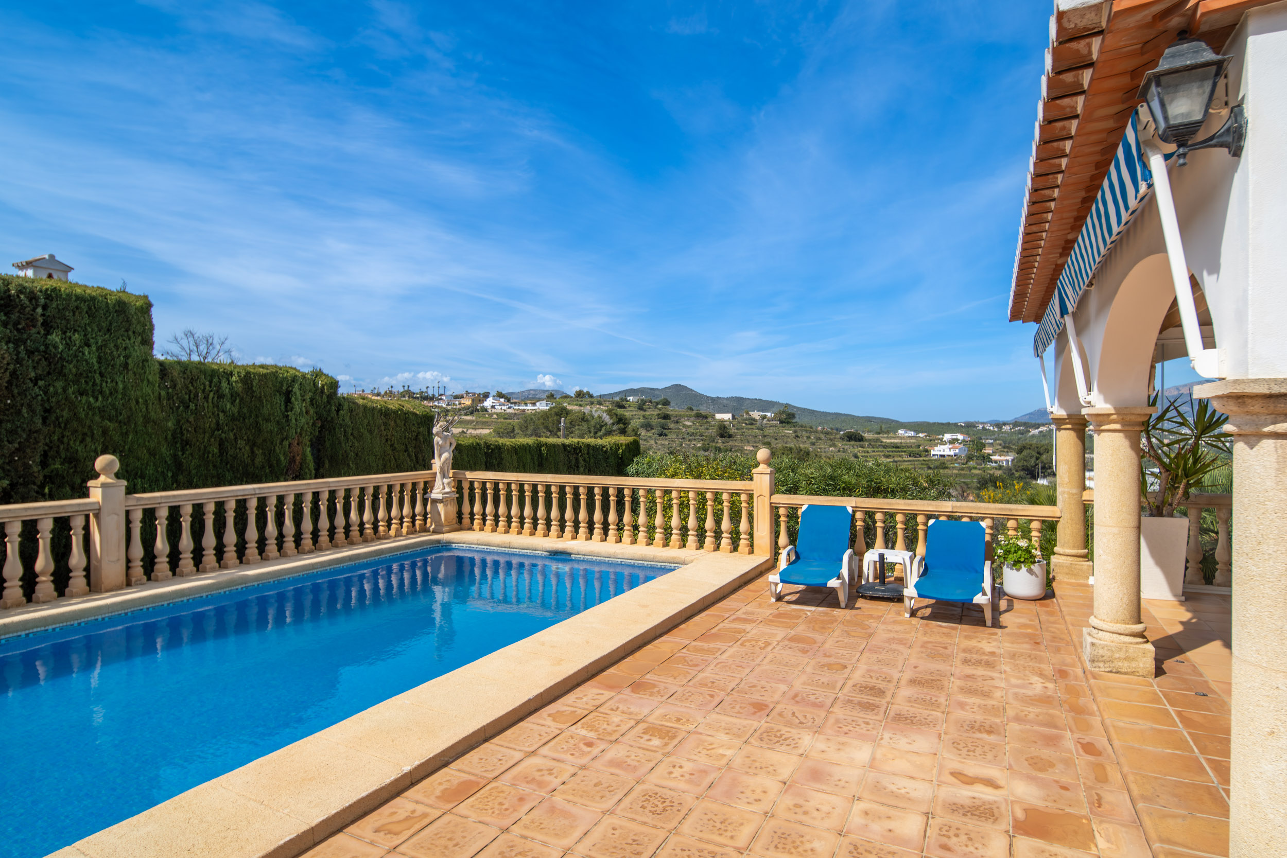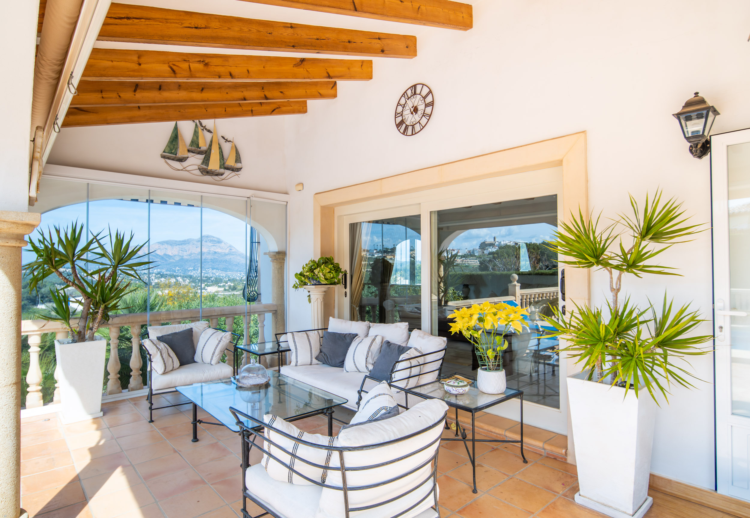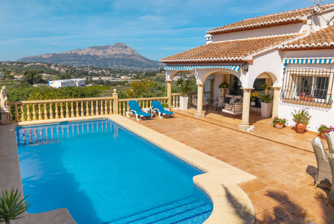 Nestled in the peaceful Calistros area of Benitachell, this charming villa is a home that immediately captures the heart. From the moment you arrive, what truly sets it apart are the breathtaking open views across the Montgó, the picturesque old town of Benitachell and the beautiful green hills stretching into the distance. It is the kind of setting that brings a real sense of calm and space, where every sunrise, sunset and quiet moment at home feels that little bit more special. With its ideal south-west orientation, the villa is bathed in natural light throughout the day, creating a warm and welcoming atmosphere all year round. Whether you are looking for a permanent home to enjoy daily life in the sun, or a peaceful retreat where you can slow down and embrace the Mediterranean way of living, this property offers exactly that balance of comfort, beauty and practicality. Although Spain is known for its sunshine, winter evenings can be unexpectedly cool; the villa’s underfloor heating and log-burning fireplace ensure warmth and comfort throughout the year. The location is another major part of its appeal. Tucked away in a quiet and secure residential area, the urbanisation benefits from having only one way in and one way out, creating an added level of privacy, security and peace of mind. The villa itself is further enhanced by high surrounding walls, offering an exceptional feeling of security and making it an ideal home for families, for those living here year round, or simply for anyone who values feeling comfortable and protected in their own space. All of this while maintaining its charm. With the Lady Elizabeth School and the new XIC College campus just a few minutes away, the villa is especially well suited to family life. Jávea and Moraira can both be reached in around ten minutes, giving you easy access to beaches, restaurants, shops and all daily amenities. The villa is distributed entirely on one level, offering a layout that is both practical and comfortable for all ages. Inside, the living spaces feel bright, welcoming and beautifully connected to the outdoors. Large glass sliding doors lead directly from the main living area onto the naya and pool terrace, creating the effortless indoor-outdoor lifestyle that defines Mediterranean living. It is easy to imagine slow breakfasts in the morning sun, peaceful afternoons by the pool and warm evenings enjoying the comfort and tranquillity of this beautiful setting. The outdoor spaces are equally appealing, designed for both relaxation and everyday enjoyment. The pool area is generous and inviting, with plenty of room to unwind in complete privacy, while the barbecue area brings even more character and versatility to the home. Whether for alfresco dining, quiet moments in the sun or simply appreciating the stunning open views, this is a space that truly enhances the lifestyle the villa offers. On the lower level, the property also offers a very spacious additional area, providing valuable extra room that can be adapted to suit a variety of lifestyles and needs. Whether used as a laundry area, storage space, hobby room, gym or for other practical purposes, it adds an appealing sense of flexibility to the home. Altogether, this is a villa that combines outstanding open views, a secure and peaceful setting, flexible additional space and the comfort of easy single-level living. With its seamless connection between indoor and outdoor areas, inviting pool terrace and excellent proximity to international schools, Jávea, Moraira and all daily amenities, it offers a wonderful balance of family practicality and relaxed Mediterranean charm.