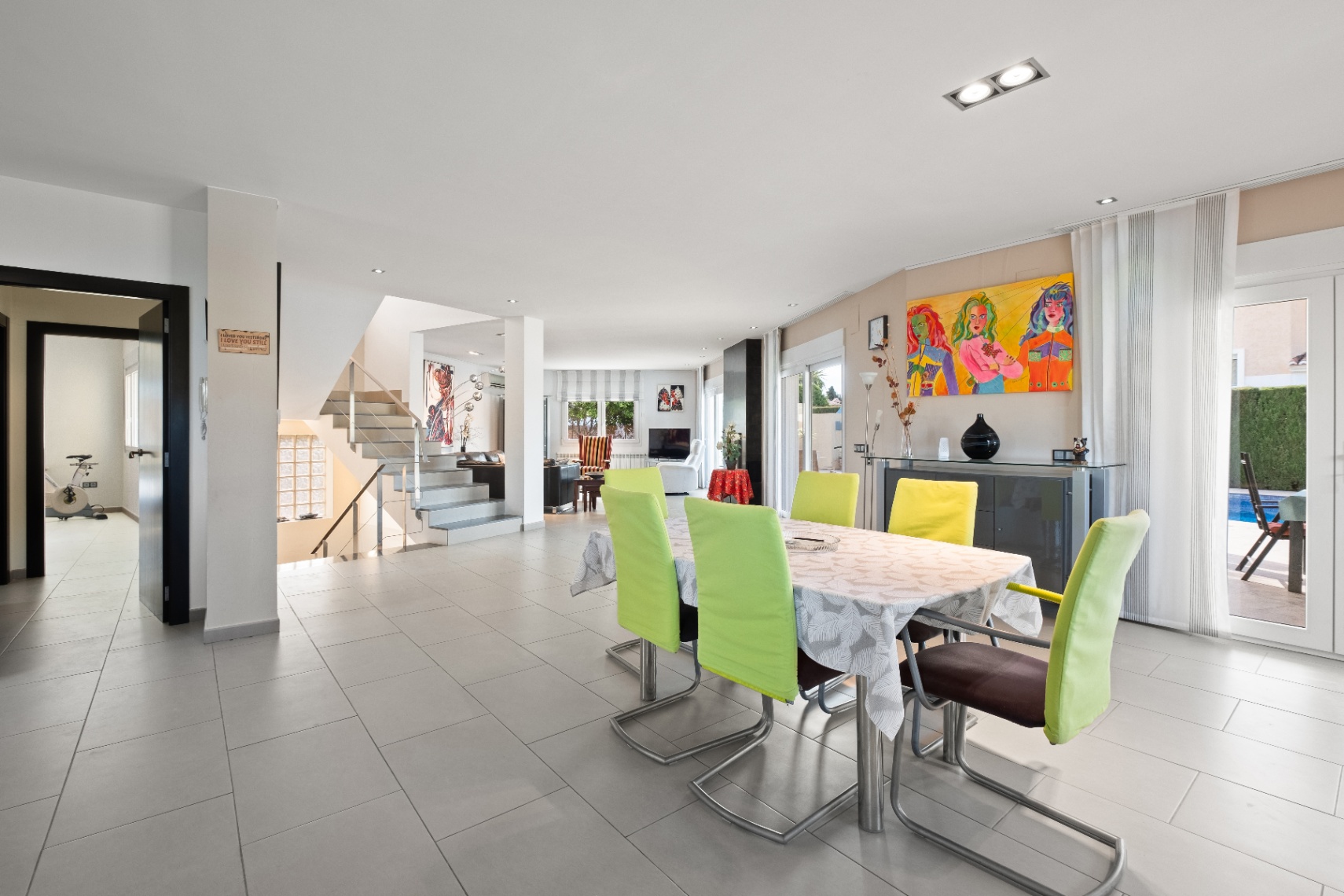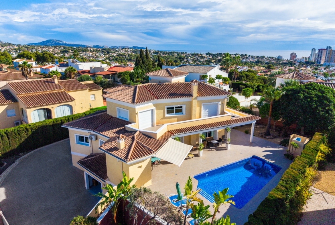 This modern and wellmaintained villa, built in 2007, is located in a quiet and private residential area of Calpe. It offers spacious interiors, generous outdoor areas, stunning mountain views, and a southfacing orientation that ensures sunlight throughout the day. With a total built area of 410 m² on a 983 m² plot, the property is distributed across three floors and is perfectly suited for yearround living or as a luxury holiday retreat.