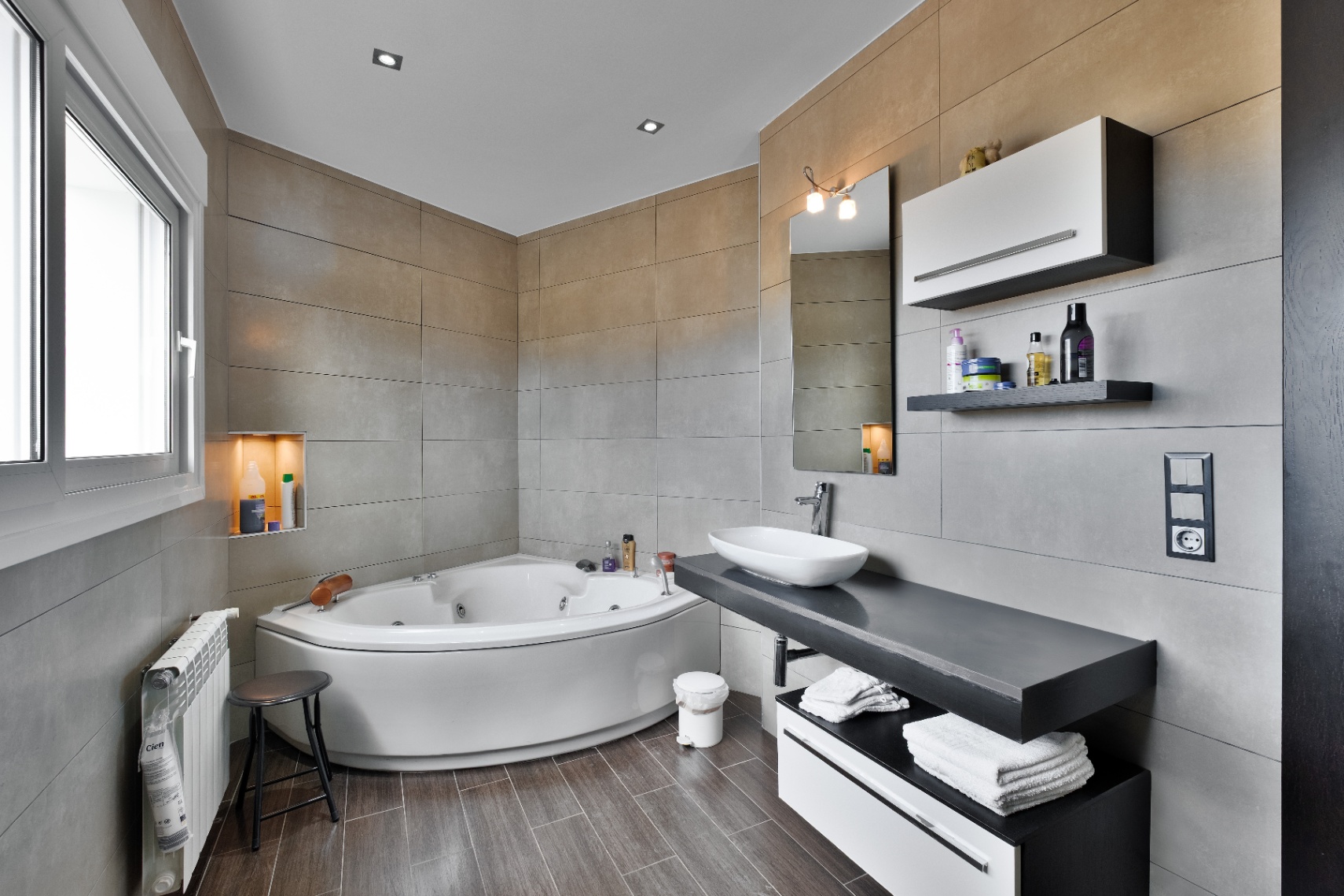 The villa is equipped with underfloor heating with an individual system and air conditioning. It has an energy rating of E.