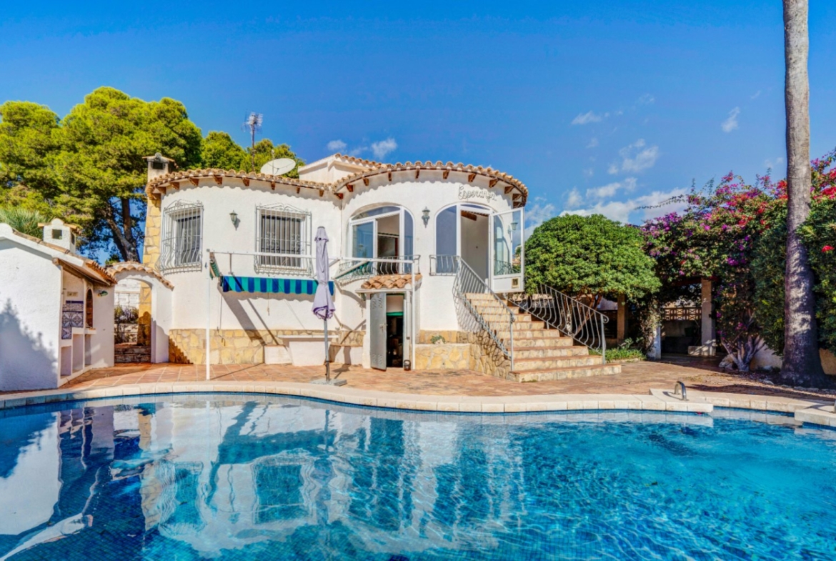 Discover this charming detached villa in Calpe, boasting stunning views of the Peñón de Ifach and located in a quiet area, within easy walking distance of the town centre, shops, restaurants and all amenities. An ideal property as a permanent residence, second home or a holiday rental investment. Set on a generous 821 m² plot, the property offers privacy, spacious outdoor areas and the perfect setting to enjoy the Mediterranean lifestyle. SURROUNDINGS Quiet and safe residential areaOpen views of the Peñón de IfachLarge plot with garden and trees providing natural shadeWalking distance to Calpe town centre and servicesExcellent connections to beaches and leisure areasA perfect environment for those seeking peace and quiet without giving up the convenience of having everything close by. LAYOUT The property has a built area of 164 m² and a practical, functional layout: Bright living-dining room with views of the PeñónSeparate kitchen, ideal as a family meeting point2 quiet bedrooms designed for rest and comfort1 spacious and functional full bathroomIdeal for couples, small families or as a low-maintenance holiday home. FEATURES Detached villaViews of the Peñón de IfachStorage roomBasement, perfect for storage or as a hobby areaParking space within the plotAir conditioningGas central heating (radiators)OUTDOOR AREAS The exterior is one of the main highlights of this property: Private swimming pool to enjoy the Costa Blanca sunGarden with natural shaded areasIdeal space to relax, sunbathe or share moments with family and friendsLarge plot with multiple possibilities for personalisationALSO IDEAL AS AN INVESTMENT Calpe is one of the most sought-after destinations on the Costa Blanca all year round, making this property an excellent option for holiday or short-term rentals, with high demand and good profitability. Its walking-distance location to the town centre, views of the Peñón de Ifach and private swimming pool are highly valued features for tenants.