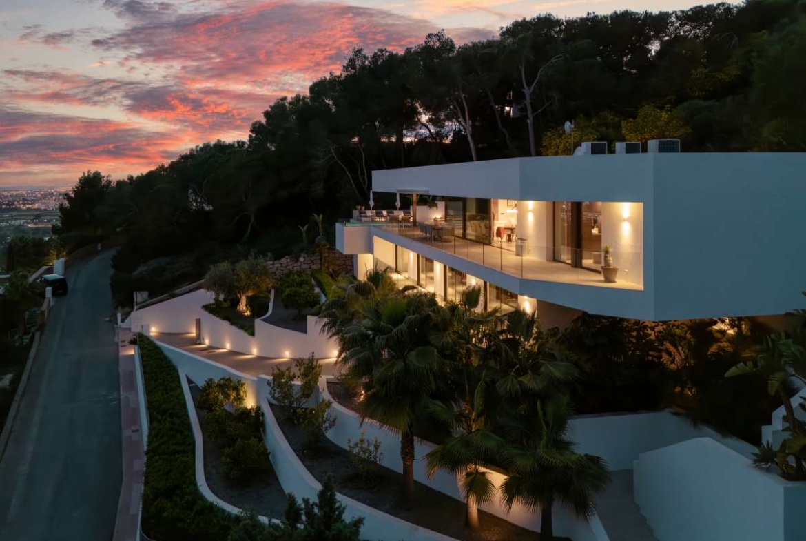 Living in Can Furnet: Privacy, Prestige and Panoramic ViewsDream Propertiesproudly presents this one-of-a-kind villa, exclusively for sale in Can Furnet, one of the most secure and prestigious gated communities in Ibiza. Just minutes away from the vibrant energy of Ibiza Town, yet surrounded by peace, nature, and total privacy. This is a home where Formentera and Dalt Vila form the daily backdrop to your life. Whether you're waking up to a rising sun or enjoying the glittering lights of Ibiza by night – this villa has it all.Set on a generous plot of 1,148 m², the property blends refined architecture with modern luxury. Every aspect of the home radiates space, light, and elegance. Thanks to its location within a secure, 24-hour guarded community, you’ll enjoy total peace of mind and comfort in one of the most desirable parts of the island.A Masterpiece with Private Lift, Six Suites and Refined DetailsWith an impressive total living space of 510 m², spread across two above-ground floors, this villa delivers ultimate living comfort for families, lifestyle seekers, or as a high-end holiday retreat. The ground floor houses five spacious bedrooms, each with its own en-suite bathroom and beautiful views of the surrounding greenery. The first floor is dedicated to elegant living, with a generous lounge area, refined dining space, and a fully equipped kitchen. The master suite is also located on this level, featuring a luxurious en-suite bathroom and direct access to the terrace. A guest toilet, hallway, and staircase with a private elevator complete the picture.In the basement, you’ll find an additional 308 m² of flexible space, including private parking, technical rooms, and multiple storage areas – ideal for a wine cellar, home gym, spa, or any lifestyle upgrade. Every detail of this home has been meticulously finished with top-quality materials, ready for you to move in and live in style.Seamless Indoor-Outdoor Living: Pool, Terraces, and Spectacular ViewsThis villa has been designed for the ultimate Ibiza lifestyle, where indoor and outdoor spaces flow effortlessly into one another. Multiple terraces and covered verandas offer perfect places to relax, dine, or simply take in the breathtaking views of the sea and the city, any time of day. The 33 m² heated swimming pool is the centerpiece of the outdoor area – perfect for long summer days and warm evenings under the stars.Thanks to its sunny orientation, minimalist architecture, and state-of-the-art amenities, the villa is fully turn-key and ready to enjoy. Everything is in place to experience a luxurious, stylish, and carefree life in Ibiza.Ready to discover your dream villa? Contact us today to arrange a private viewing and experience elevated living in Can Furnet.