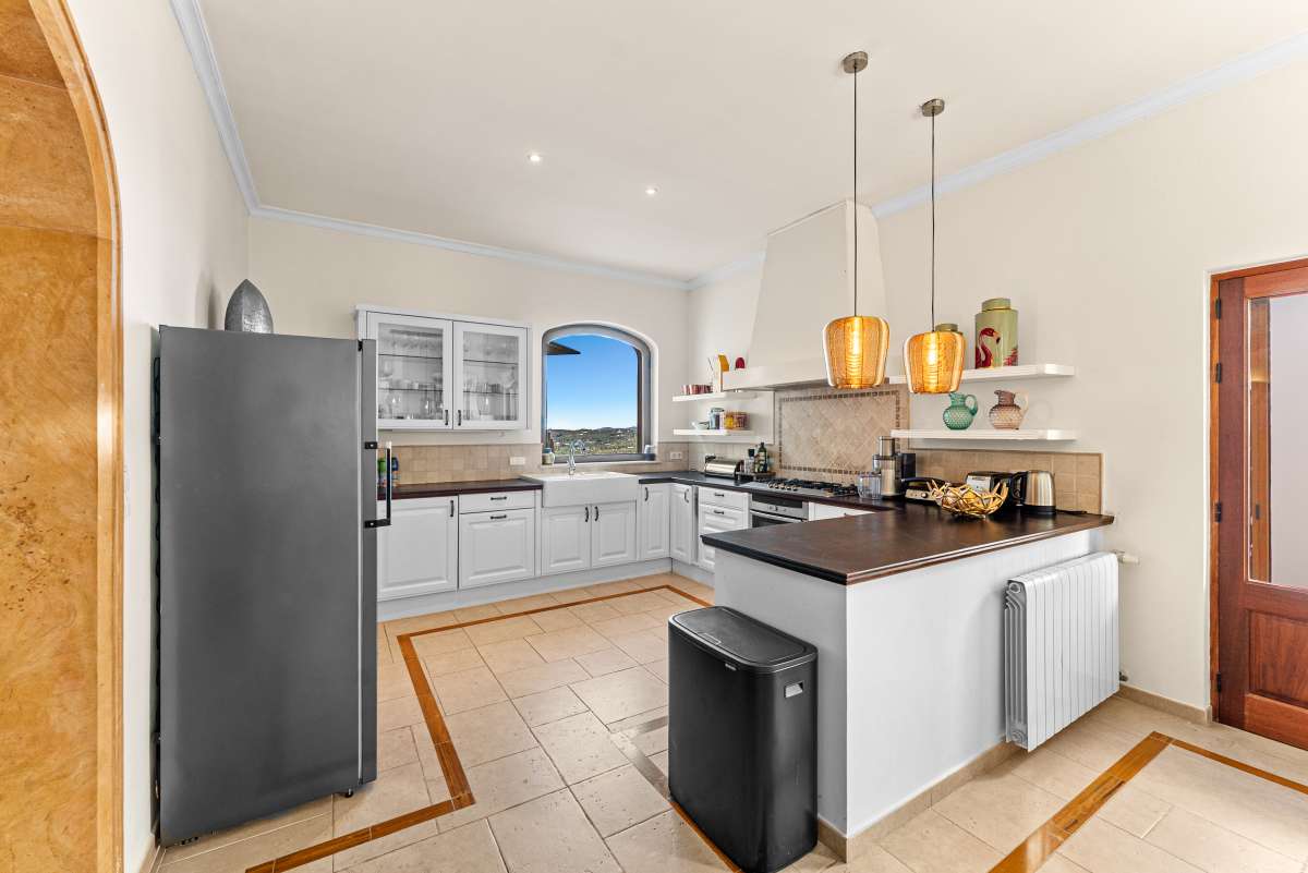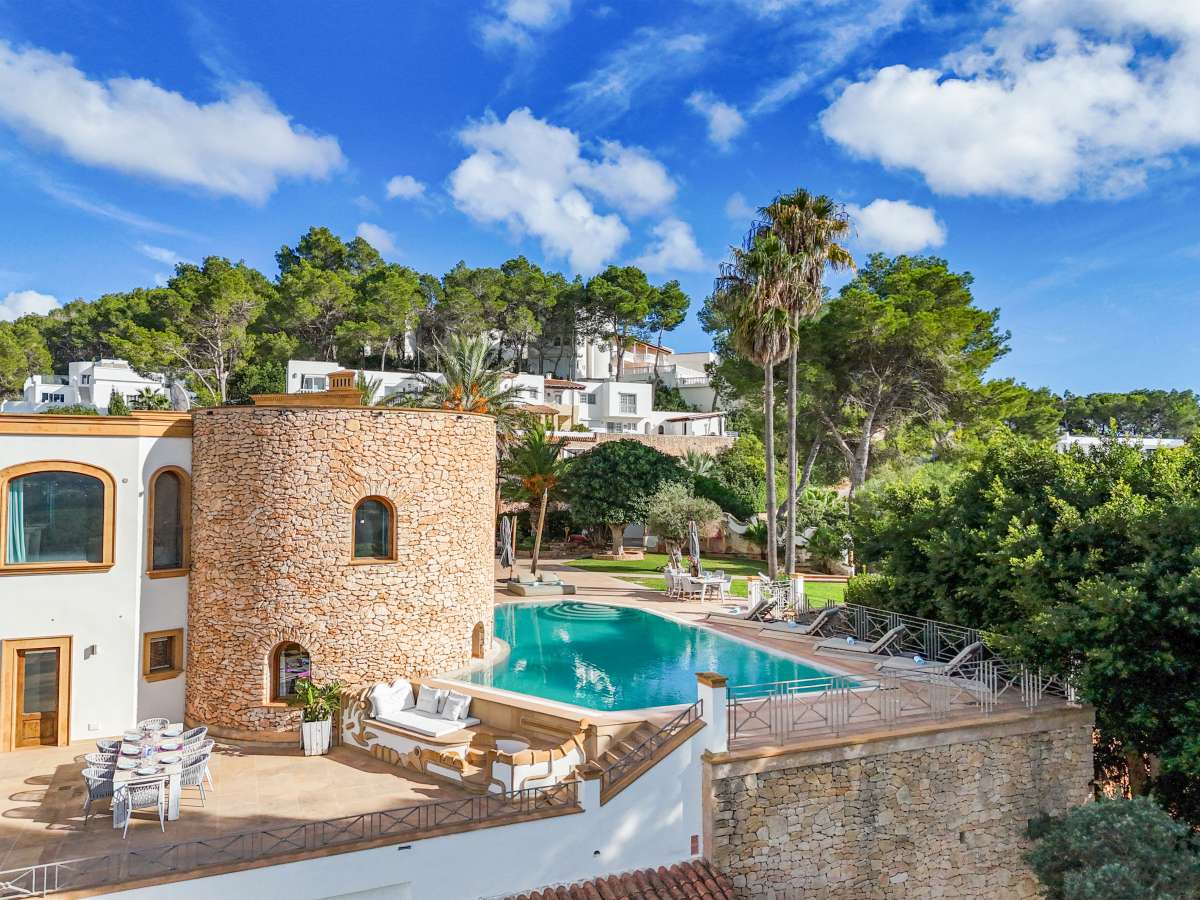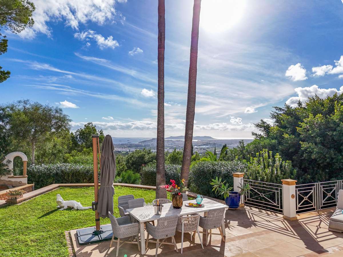 Living in Can Furnet: Exclusivity and tranquility, close to Ibiza TownStep into this impressive villa in Can Furnet, one of Ibiza’s most exclusive and secure residential areas. Luxury and comfort come together here, with spectacular panoramic views of the sea, the hills, and the iconic Ibiza Town skyline. Can Furnet offers complete privacy and tranquility, while Ibiza Town and Marina Botafoch are just 10 minutes away.A villa that radiates style, space and comfortThe property features 6 bedrooms and 6 bathrooms, all ensuite, providing maximum privacy and comfort for everyone. The bright, open living spaces are designed for ultimate enjoyment, with high ceilings, large windows, and stunning views of the surrounding nature. The luxury open kitchen is fully equipped and perfect for dinners and gatherings.The master bedroom is a true highlight, with a private terrace, a spacious walk-in closet, and a luxurious bathroom with a walk-in shower and freestanding bath. The villa also includes a gym, a playroom, and a separate laundry room. Whether you want to live here permanently or as a dream holiday home, this villa offers everything you could wish for.In addition to the main villa, with over 600 m² of living space, there are two separate apartments. These have their own private entrance and are ideal for staff or guests who want privacy, while still having access to the outdoor spaces and views.Enjoying outdoor livingThe exterior of the villa is just as spectacular as the interior. The large infinity pool offers breathtaking views of the hills and the sea, while the spacious lounge areas and sunny terraces invite relaxation and enjoyment of the Ibiza lifestyle. Start the morning with a coffee on your terrace, spend the afternoon by the pool, and end the evening with a glass of wine under the stars.The villa is surrounded by palm trees and wild gardens, creating a private oasis. With ample parking and secure access, this villa is both practical and exclusive.Your dream home in IbizaAre you looking for a villa that combines luxury, comfort, and a prime location? This is your opportunity. This exclusive property in Can Furnet offers everything you need for a dream life in Ibiza. Contact us today for a viewing and experience this unique opportunity yourself!